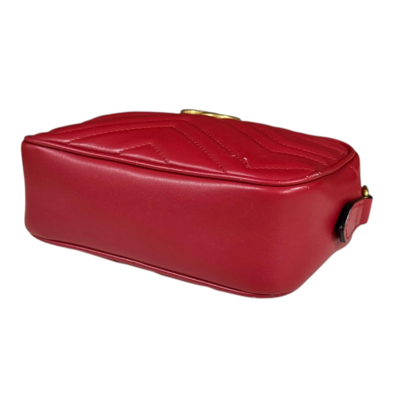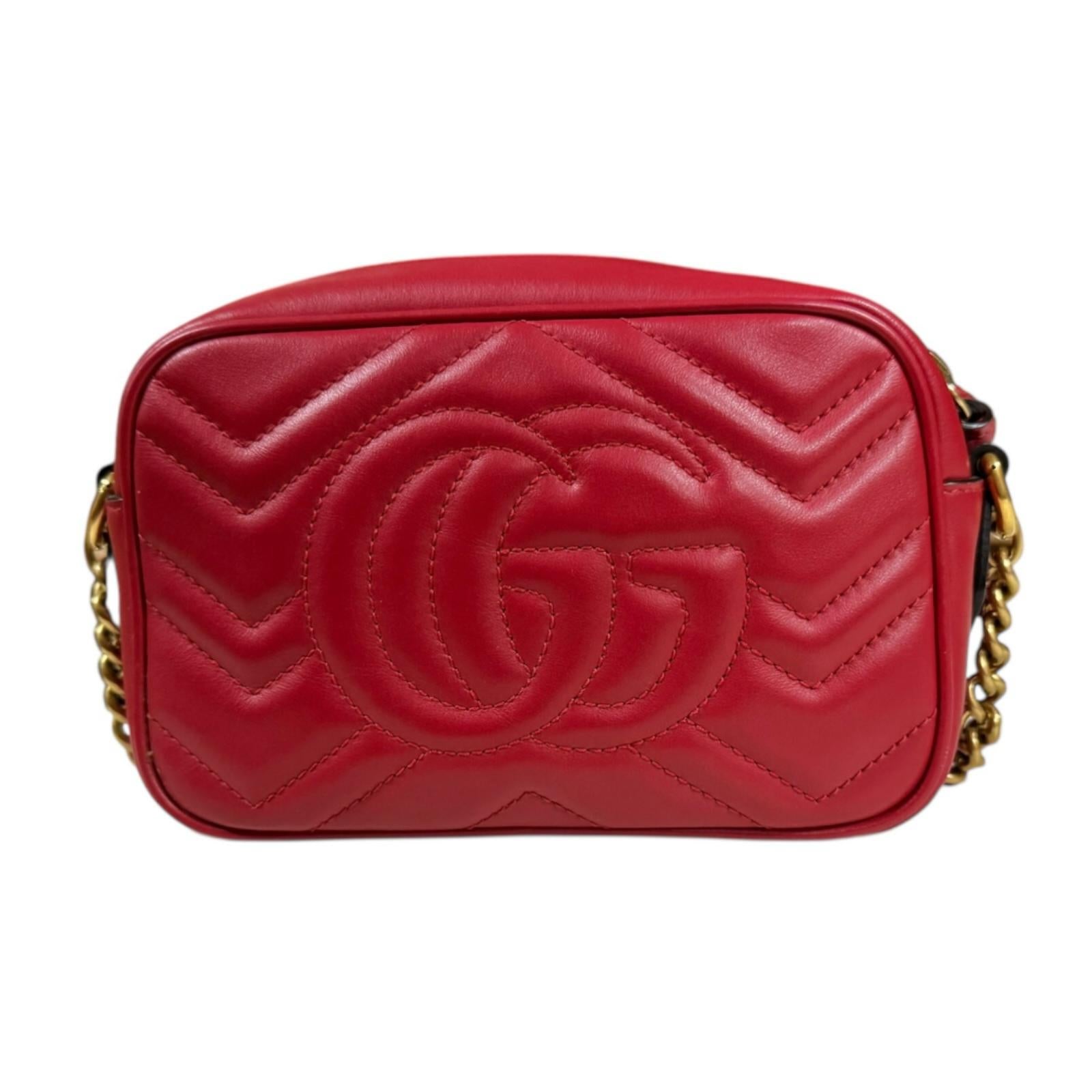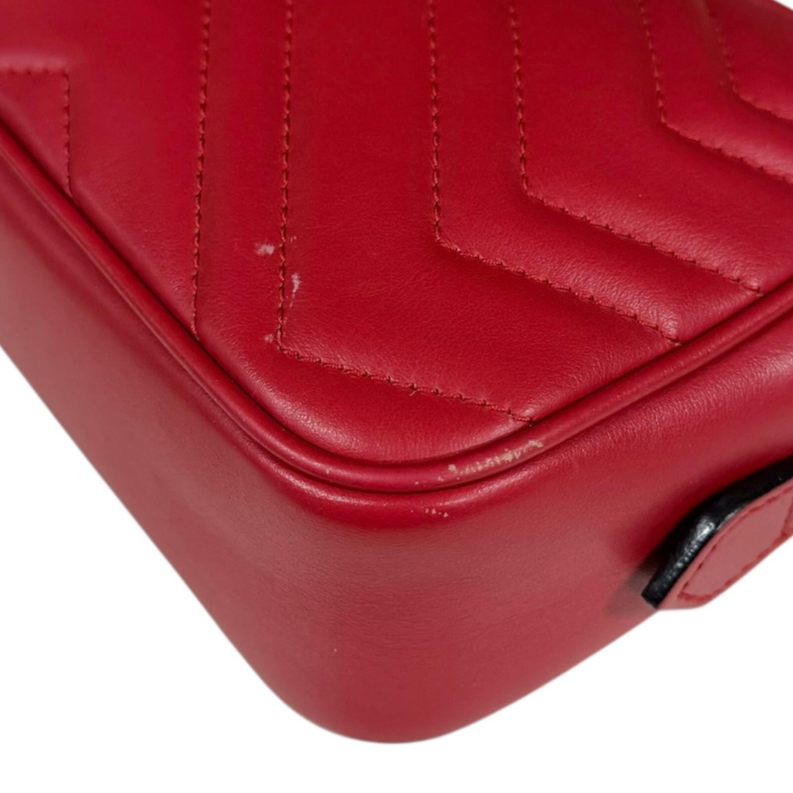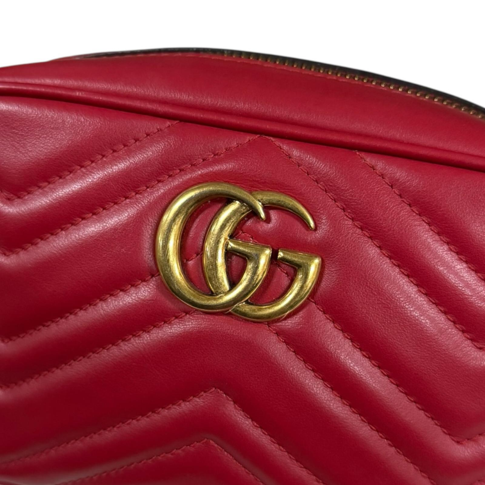 GUCCI グッチ GGマーモント ショルダーバッグ レザー レッド レディース 中古