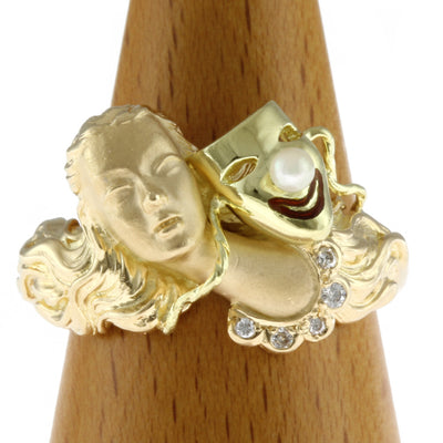 【中古】 ミキモト MIKIMOTO K18 リング 指輪 パール:1珠 ダイヤモンド フラワー 18金 K18ゴールド ゴールド レディース【BJ】【BIM】
