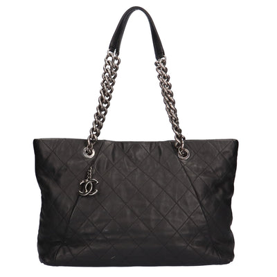 シャネル CHANEL チェーントート デカココマーク トートバッグ ラムスキン ブラック レディース 中古