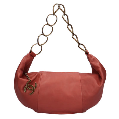 シャネル CHANEL リングチェーン ショルダーバッグ ラムスキン ピンク レディース 中古