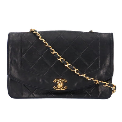 シャネル ダイアナ チェーン マトラッセ ショルダーバッグ ラムスキン ブラック レディース CHANEL 【中古】