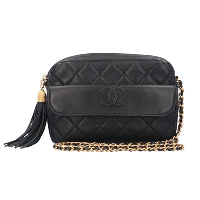 シャネル CHANEL ミニチェーン マトラッセ ショルダーバッグ ラムスキン ブラック レディース 中古
