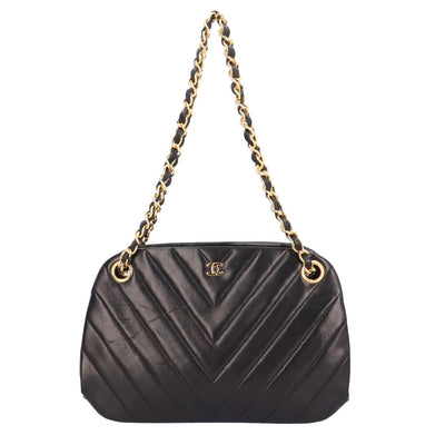 シャネル がま口チェーン Vステッチ ショルダーバッグ ラムスキン ブラック レディース CHANEL 【中古】