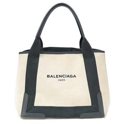 BALENCIAGA バレンシアガ ネイビーカバス トートバッグ キャンバス ホワイト レディース 中古