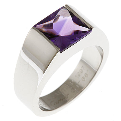 CARTIER カルティエ タンク ソロ リング 指輪 11号 18金 K18ホワイトゴールド アメジスト レディース 中古