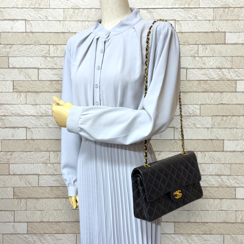CHANEL シャネル マトラッセ ショルダーバッグ ラムスキン ブラック レディース 中古