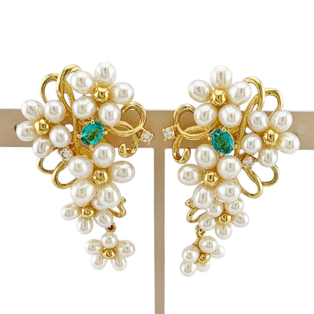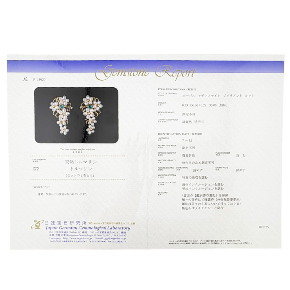 トルマリン(約0.27カラット) / トルマリン(約0.23カラット) / ダイヤモンド(約0.06カラット) / ダイヤモンド(約0.06カラット) / パール |