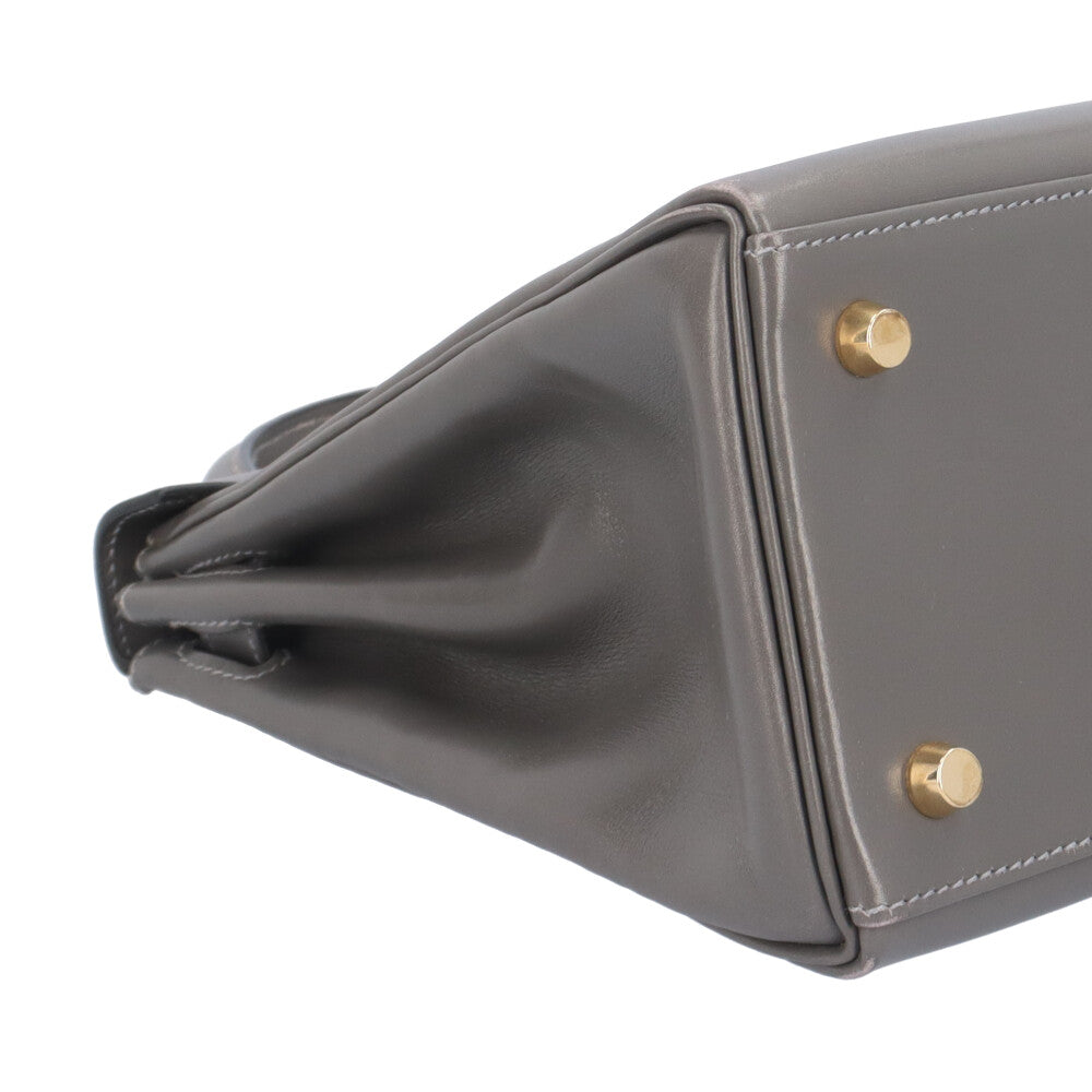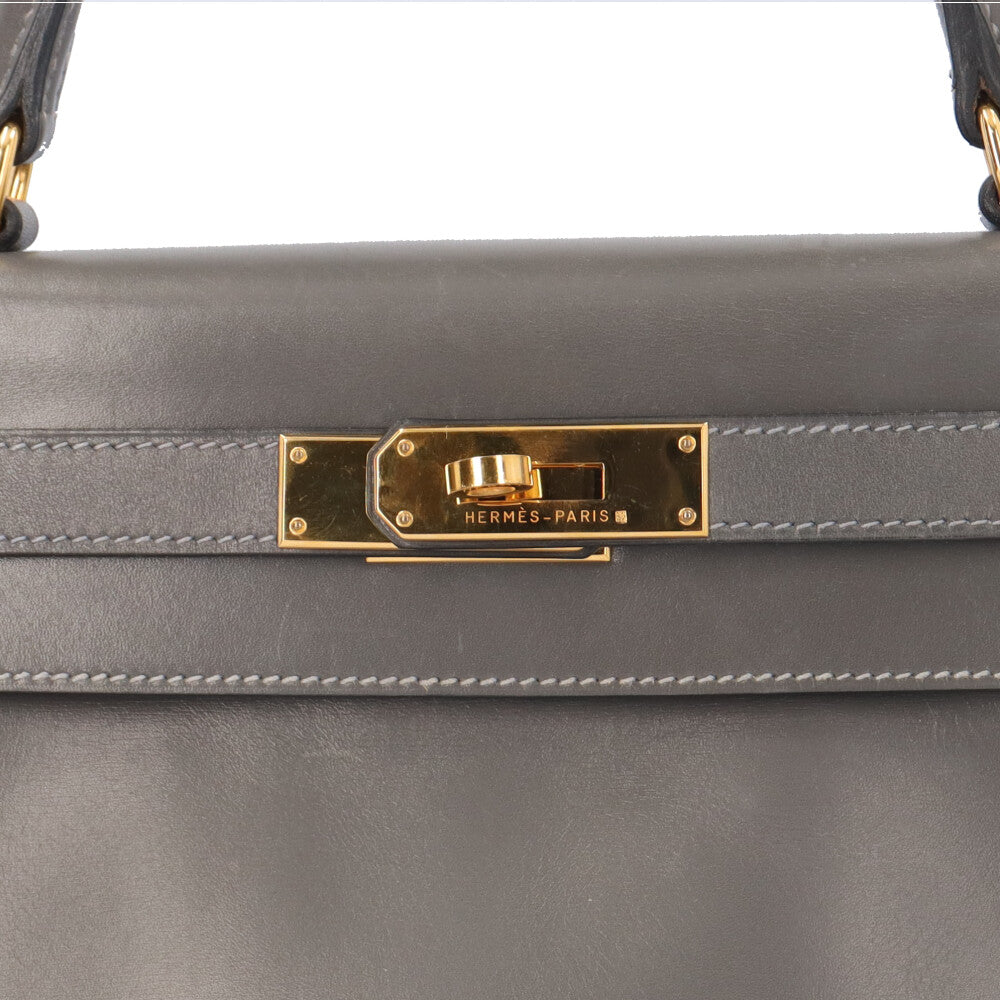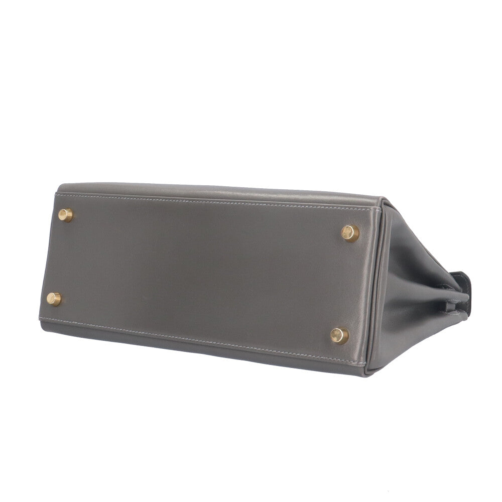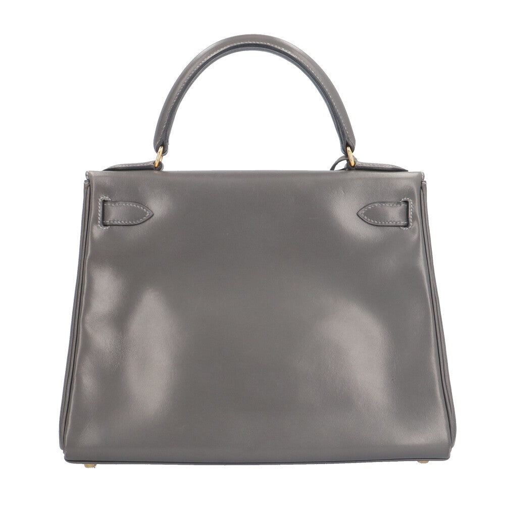 HERMES エルメス ケリー28内縫い ハンドバッグ ボックスカーフ グレー レディース 中古