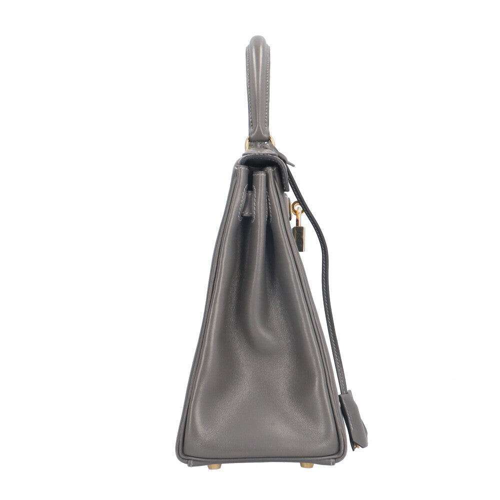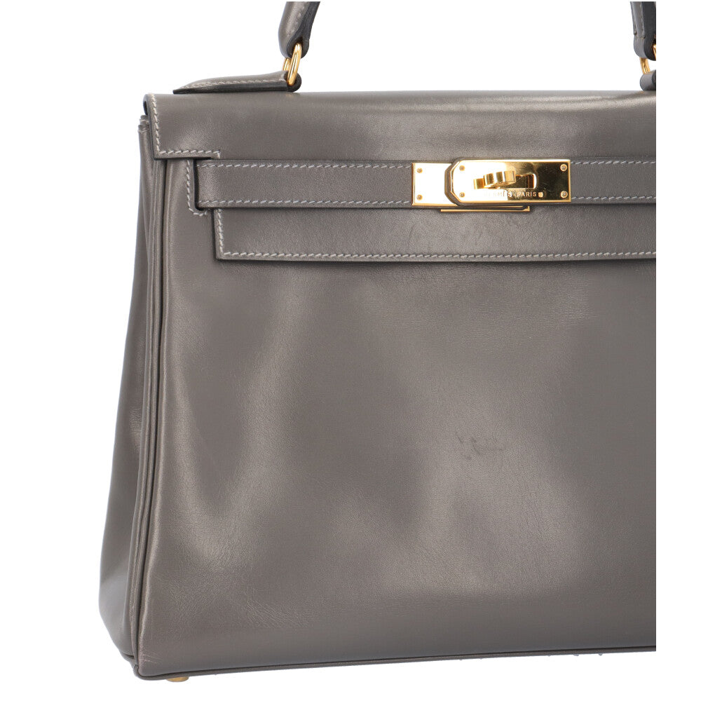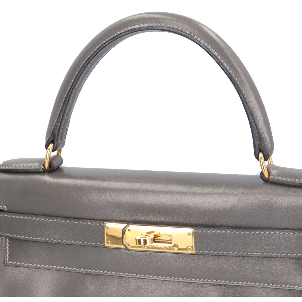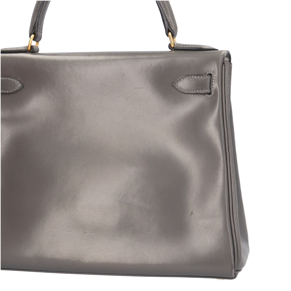 HERMES エルメス ケリー28内縫い ハンドバッグ ボックスカーフ グレー レディース 中古
