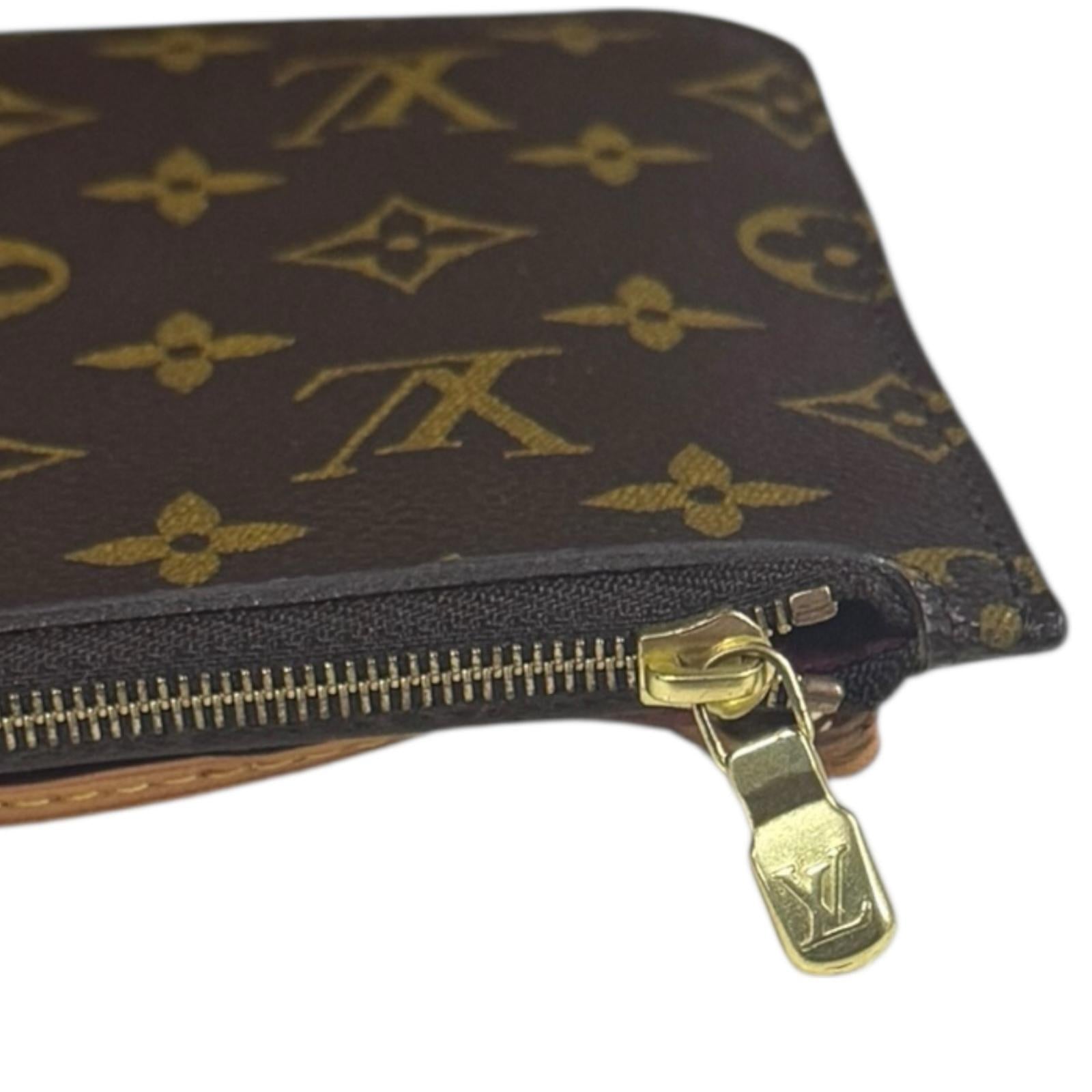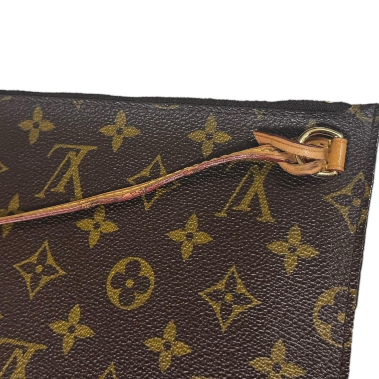 表面:革の汚れ 切り替えし部分:小キズ、角のスレ、スレ、シワ、縁の塗装(コバ)に擦れ 形状:やや型崩れ ハンドル・ストラップ:小キズ、焼け、薄汚れ、スレ、コバ擦れ、革の汚れ ポーチ:レザー紐の汚れ、コバ擦れ、ファスナー小キズ |