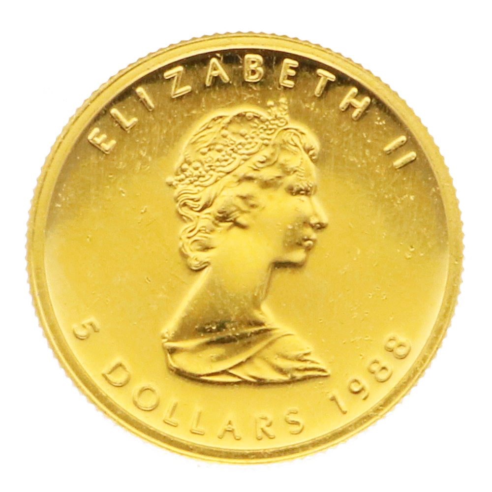 Maple Leaf 1/10 oz $5 1988 Canadian Pure Gold Gold Coin Foreign Coin K24 Gold Unisex Used