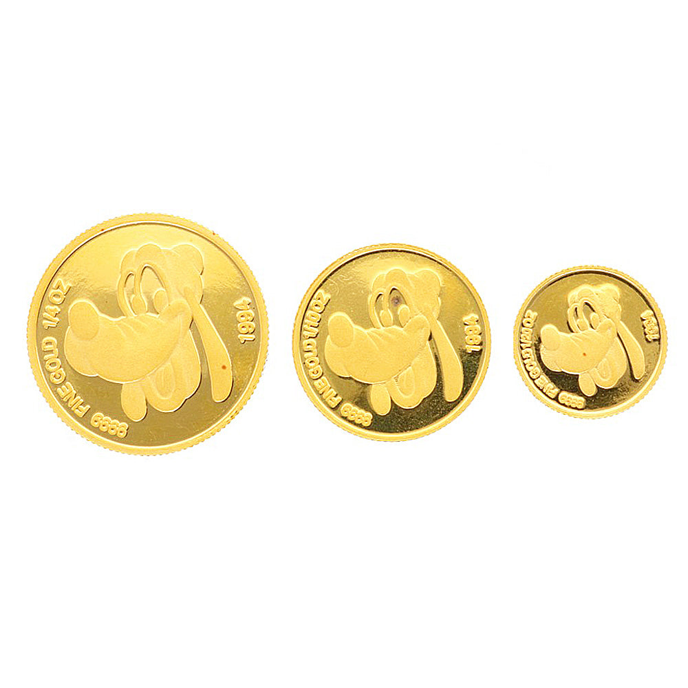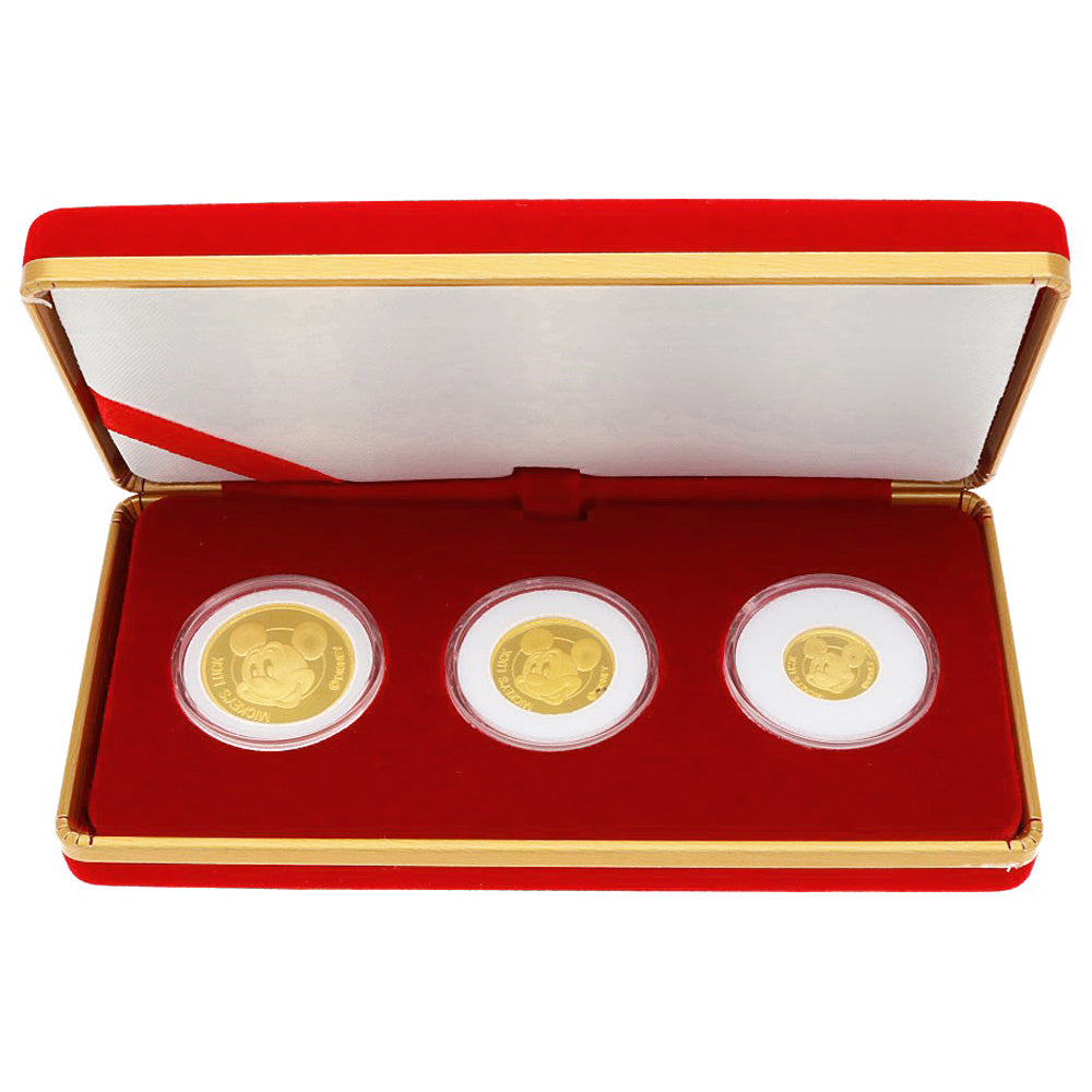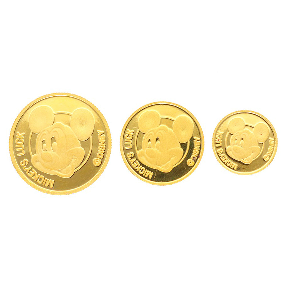 This is a supreme coin set with Mickey Mouse's adorable figure engraved in the dazzling shine of pure gold. This is an extremely rare piece that not only has an attractive value as an asset, but also has the beauty of an elaborate gold craft.