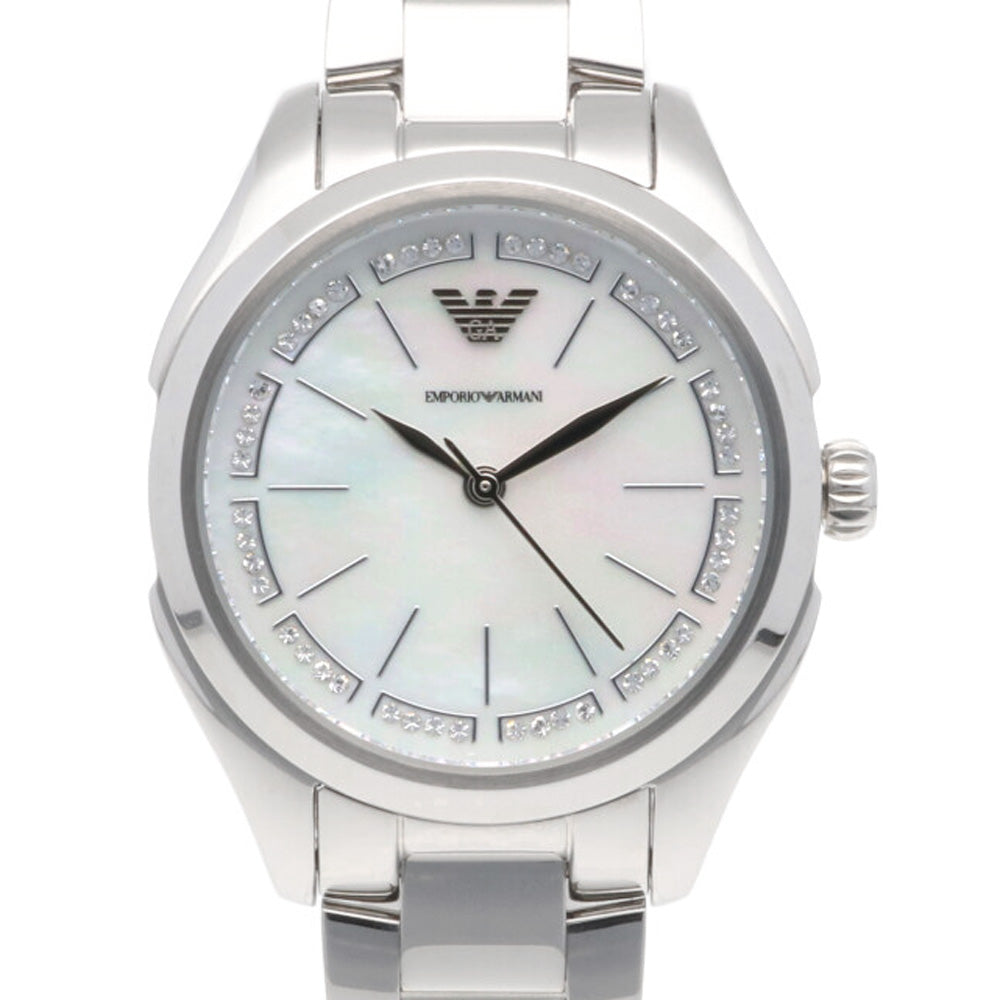 Movement: Quartz Display type: Analog display Case shape: Round face Dial color: White shell Purchased in July 2017. |