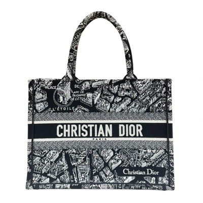 Dior Plan de Paris Book Tote Medium Embroidered Tote Bag Canvas Black Women's Used
