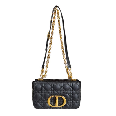 Dior Dior Caro Small Canage Shoulder Bag Leather Black Women's Used