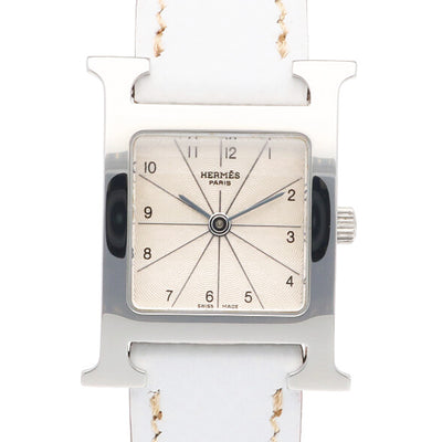 The Hermes "H Watch" is a ladies' watch designed by Philippe Mouc in 1996. It has a quartz movement and is available with leather or metal straps. The design features the initial "H", which is the brand icon of Hermes, and it is one of Hermes' most representative watches.