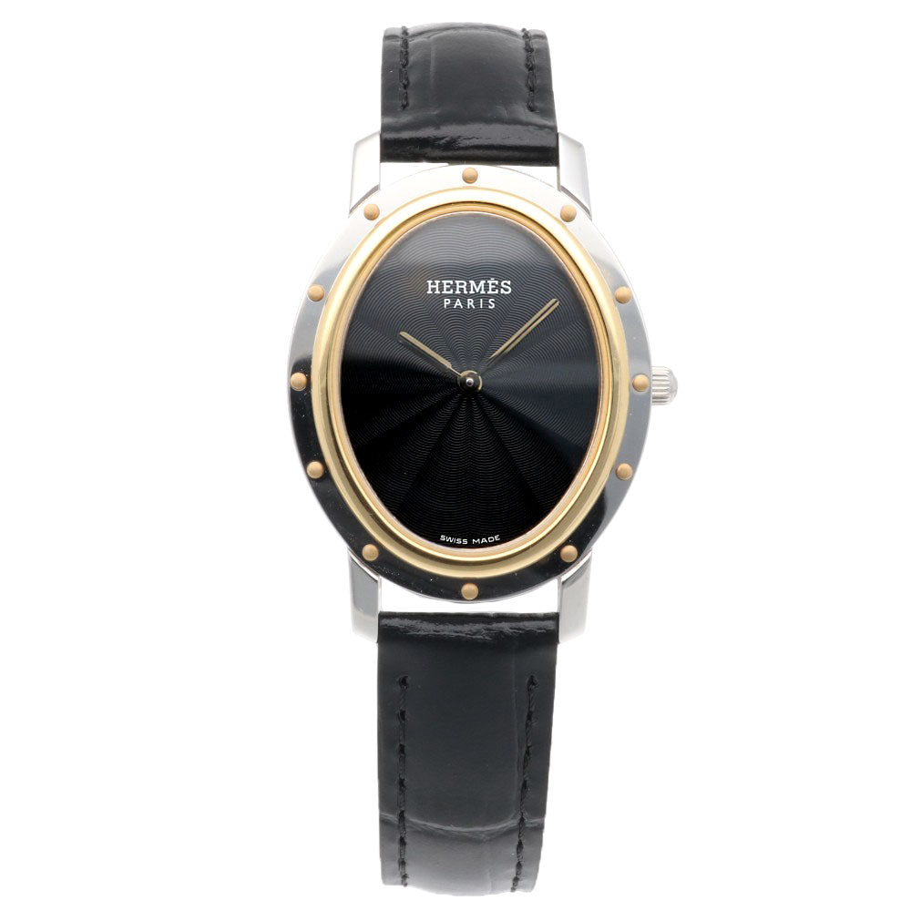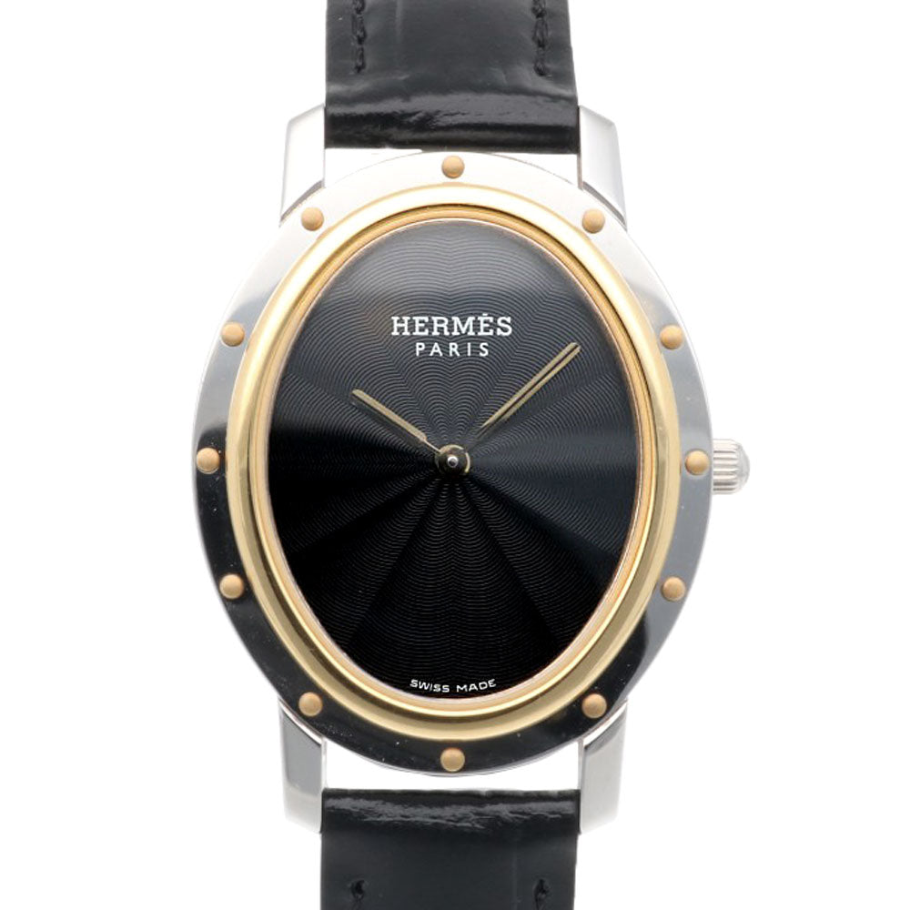 HERMES Clipper Oval Watch Stainless Steel CO1.520 Quartz Ladies 1 Year Warranty Used