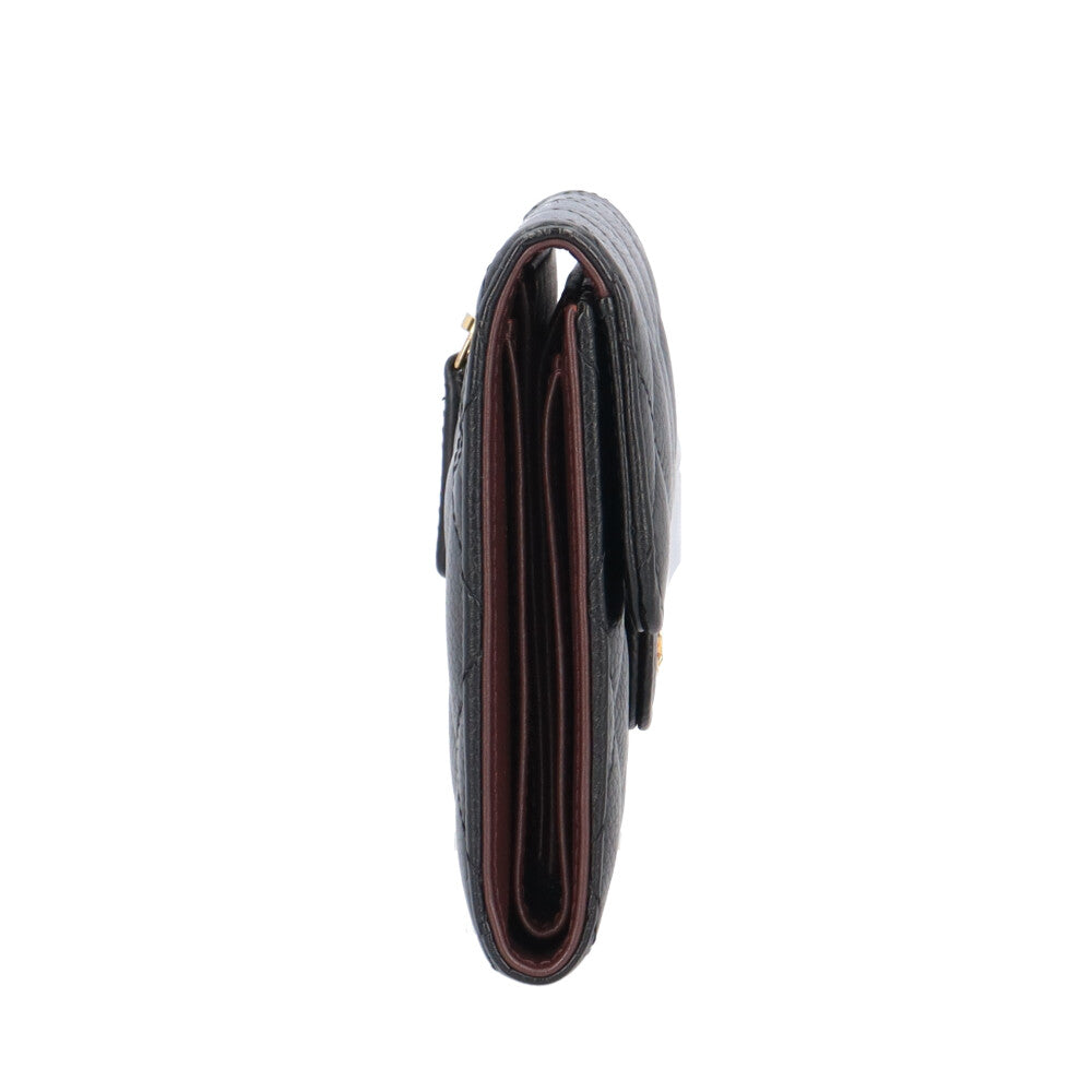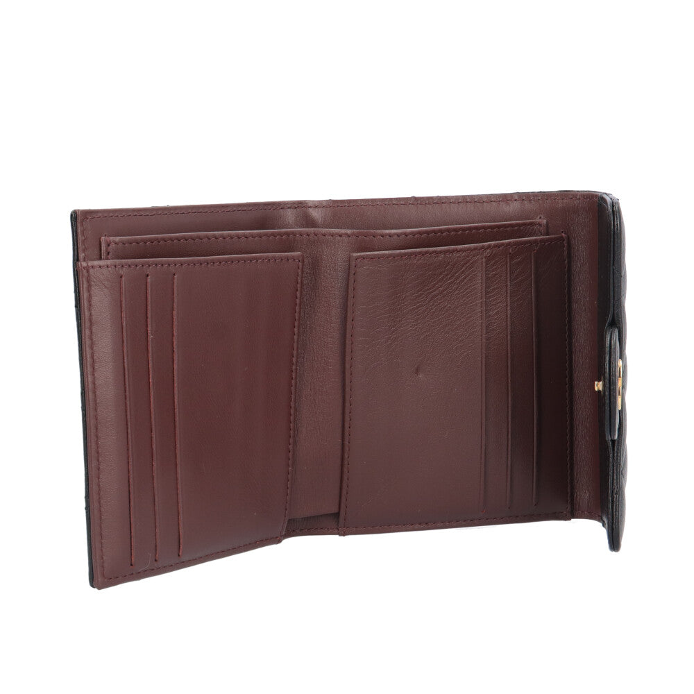 A compact tri-fold wallet with beautiful matelasse stitching.