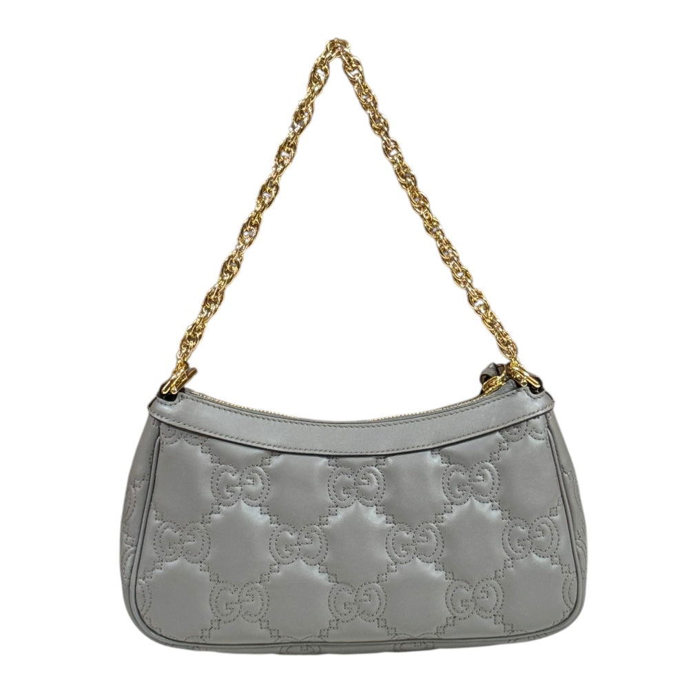 GUCCI GG Matelasse Shoulder Bag Leather Grey Women's Used