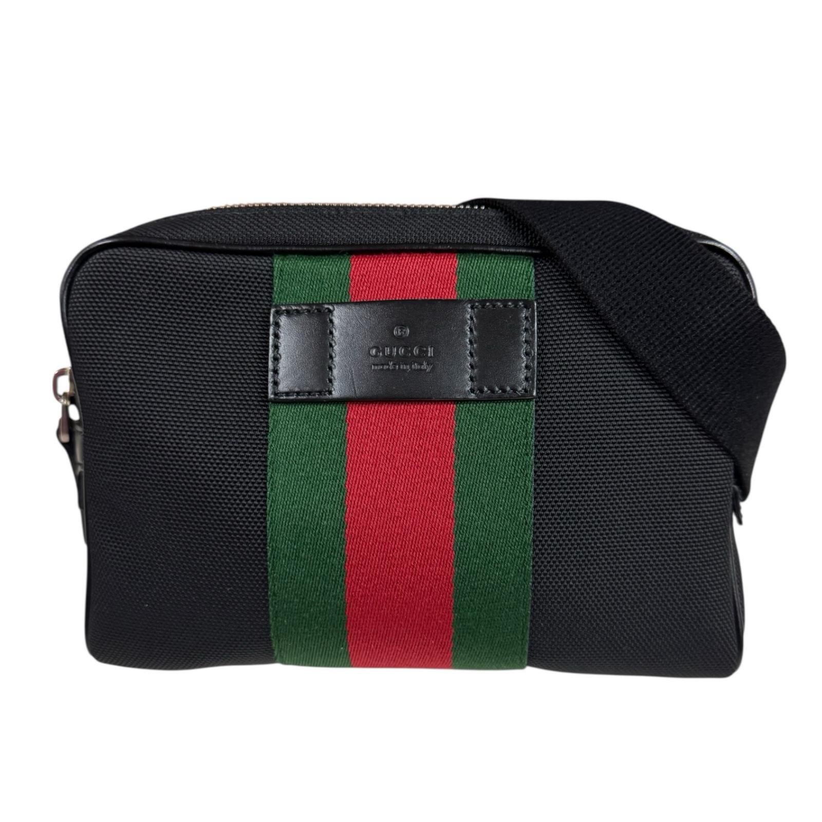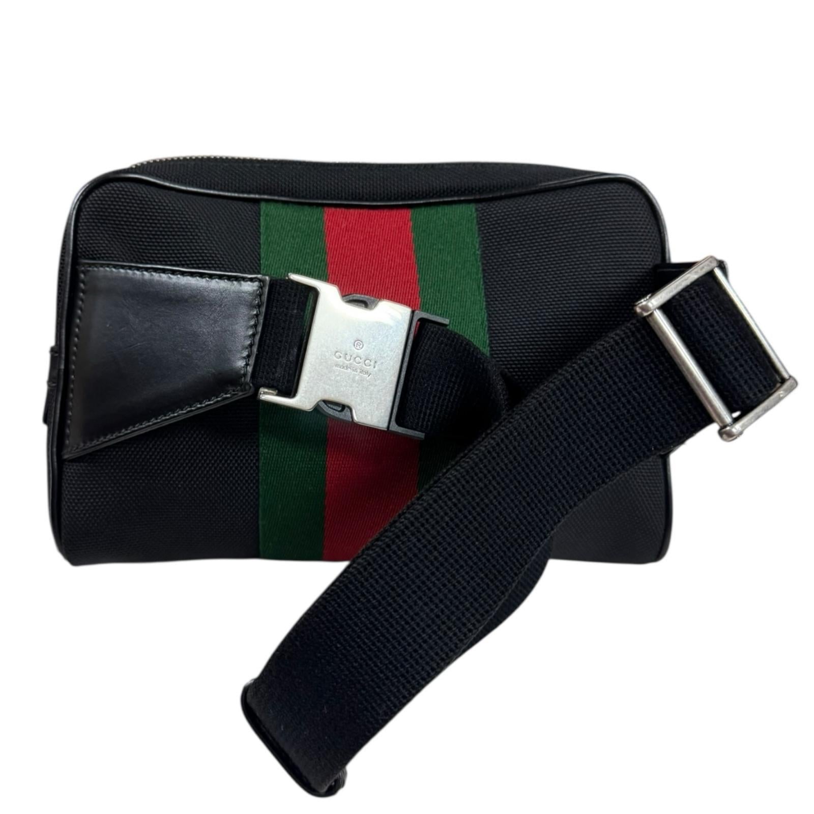 GUCCI Sherry Waist Bag Canvas Black Unisex Used
