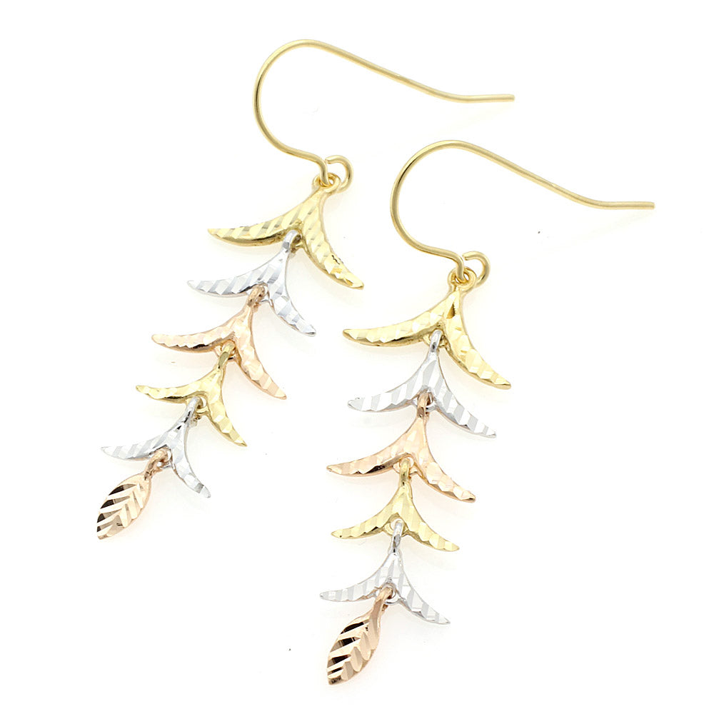 The three-tone gold design sways around the ears, creating a glamorous look around the face.
