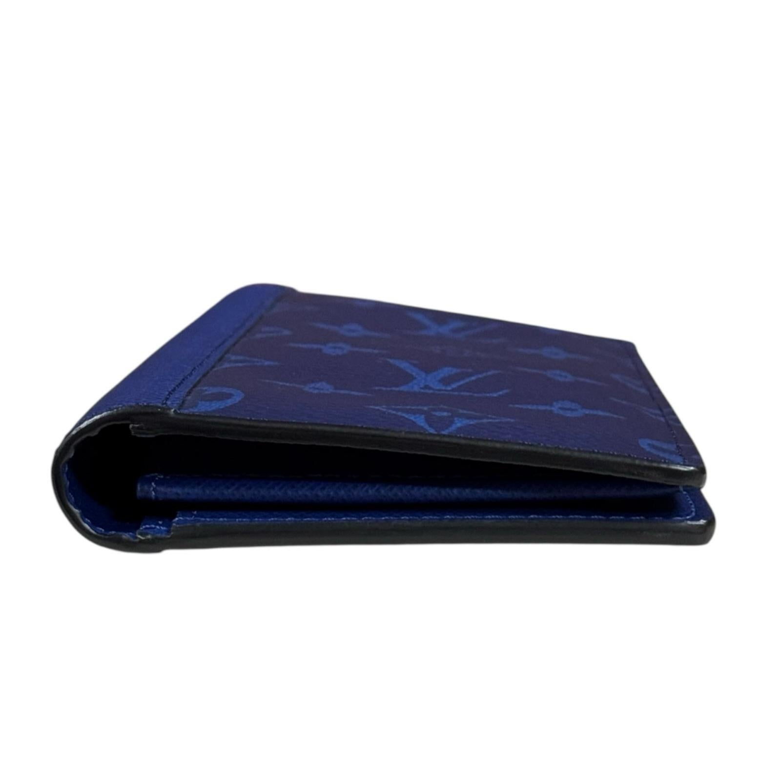 The cobalt color combines taiga leather and monogram canvas.