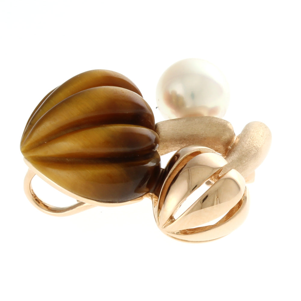 MIKIMOTO Brooch 18K K18 Pink Gold Tiger Eye Women's Used