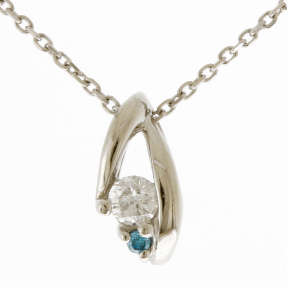 This delicate and simple necklace features a beautiful balance of clear and blue diamonds.