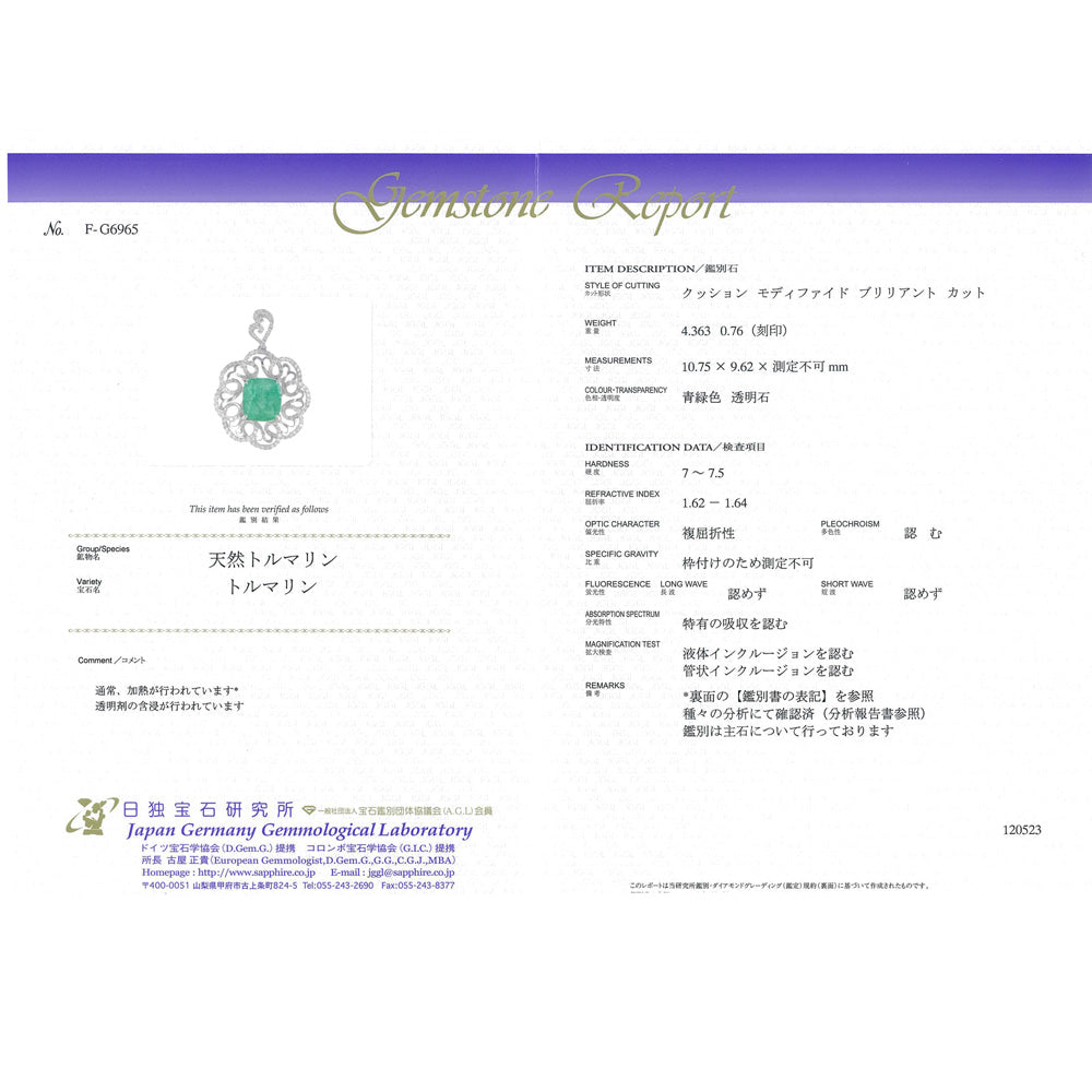 Pendant top Pt900 platinum elbaite tourmaline ladies used