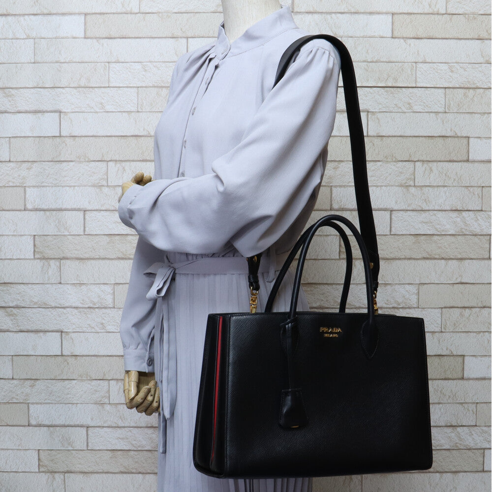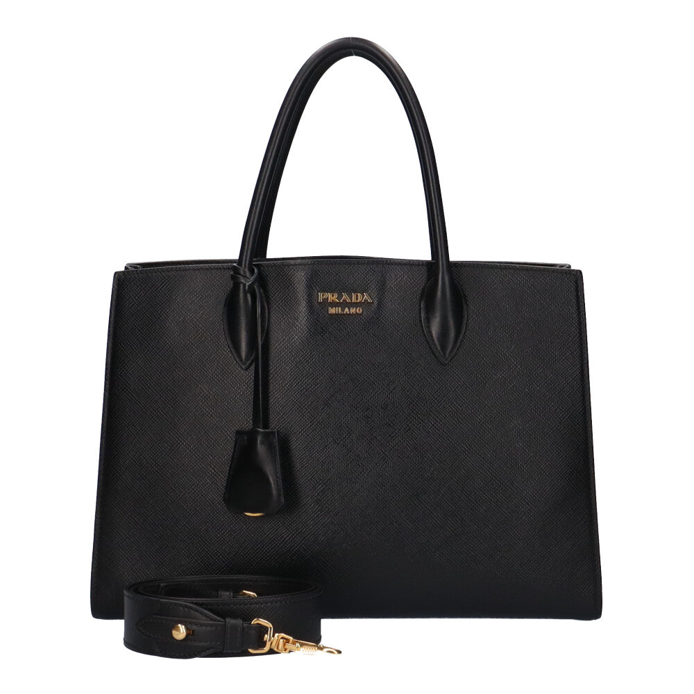 PRADA Large Tote Saffiano Shoulder Bag Leather Black Women's Used