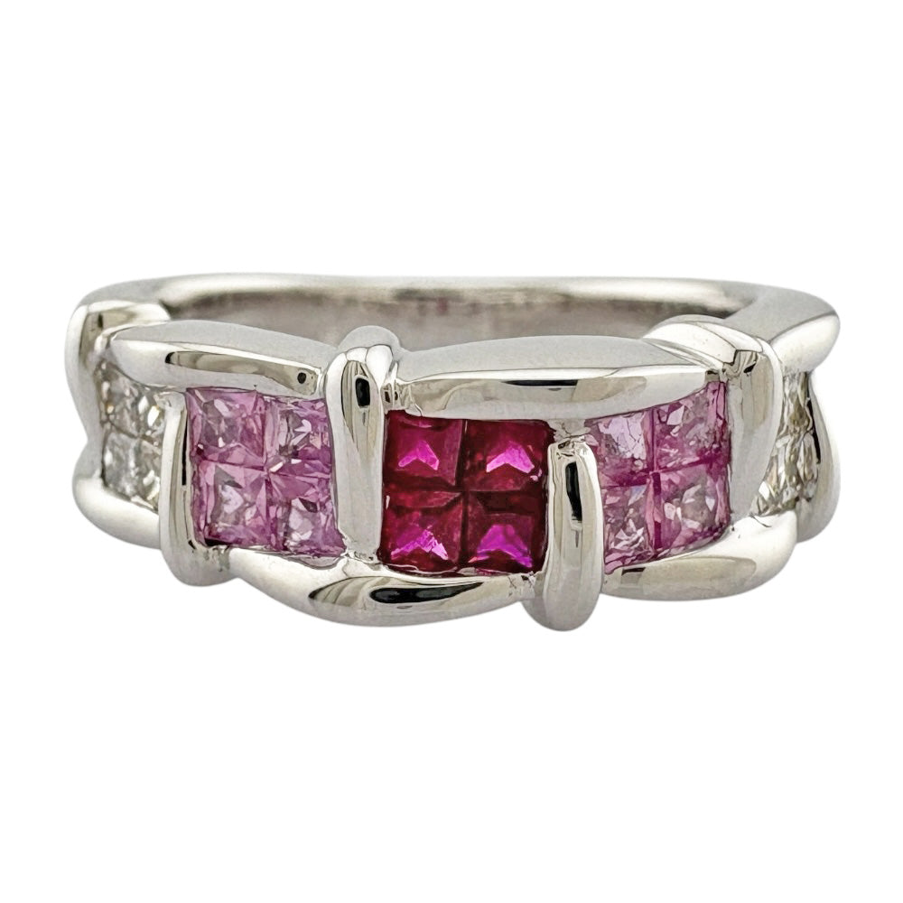 This ring has a beautiful gradient, woven from rare pink sapphires and diamonds. The elegant curved design will add a touch of color to your fingertips and give off a special sparkle that is unique to you.