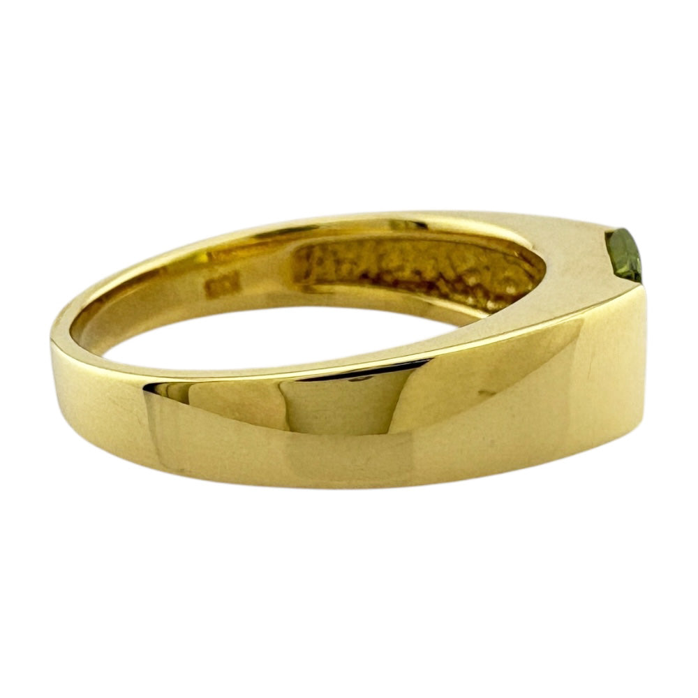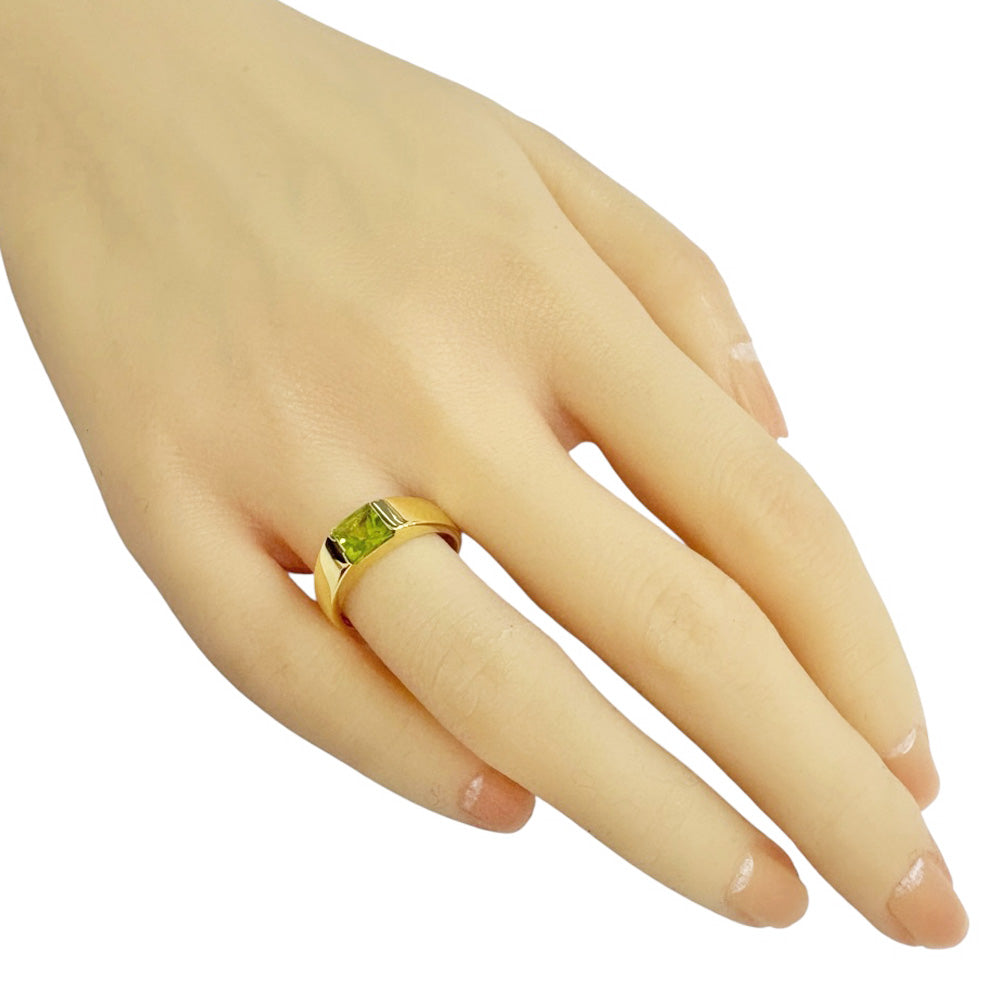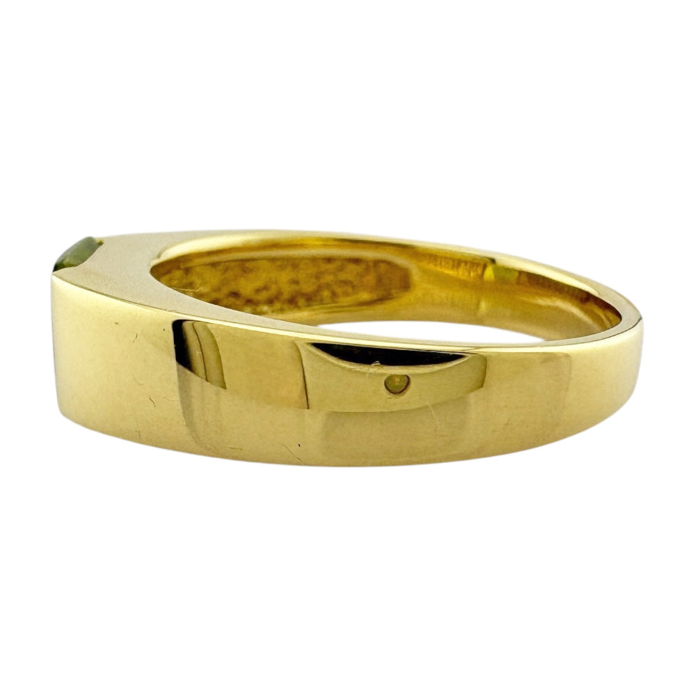 This ring features a vibrant yellow-green peridot that stands out against the sparkle of the 18 K yellow gold. The simple yet distinctive design brightens up your fingertips and enhances your individuality.