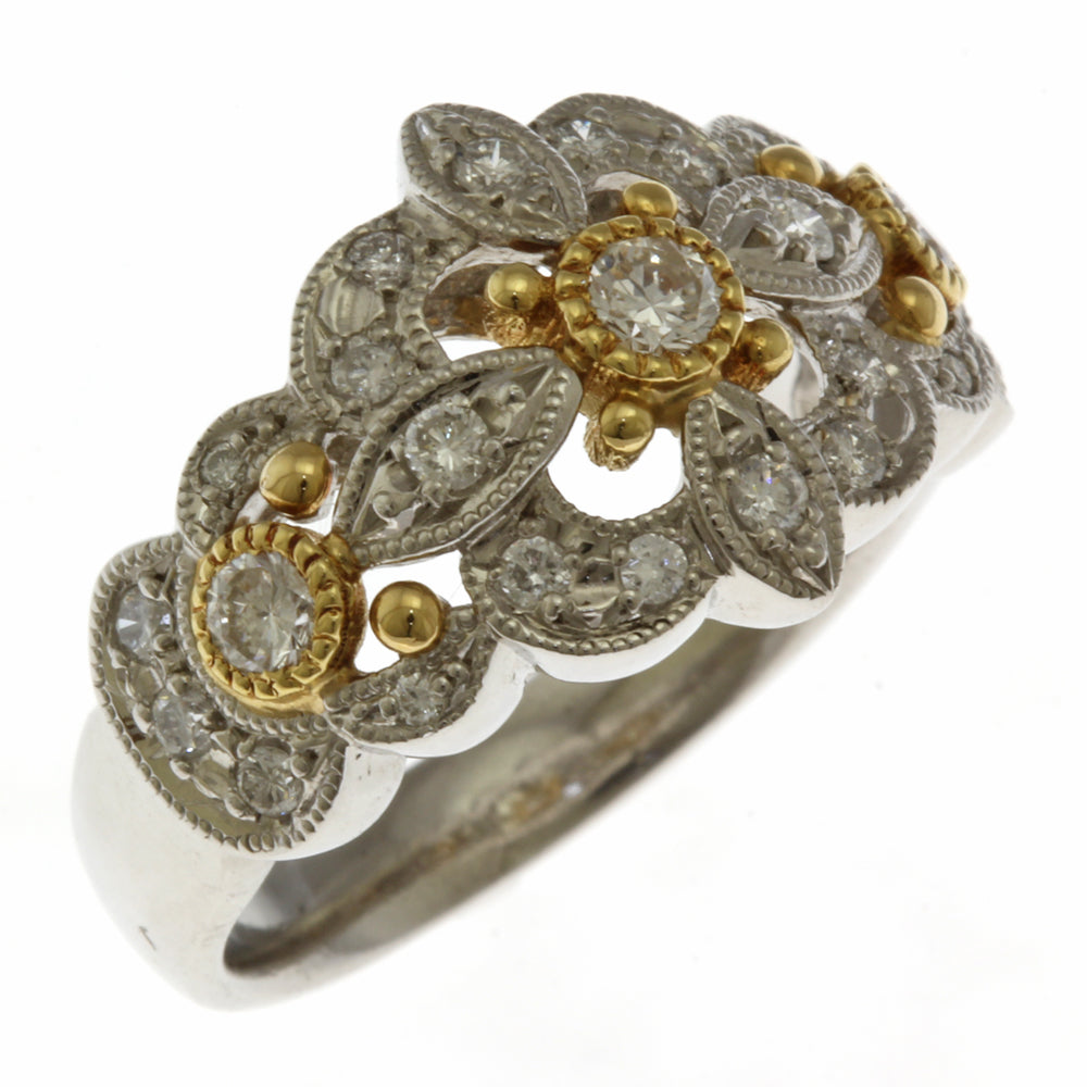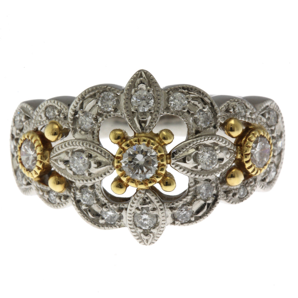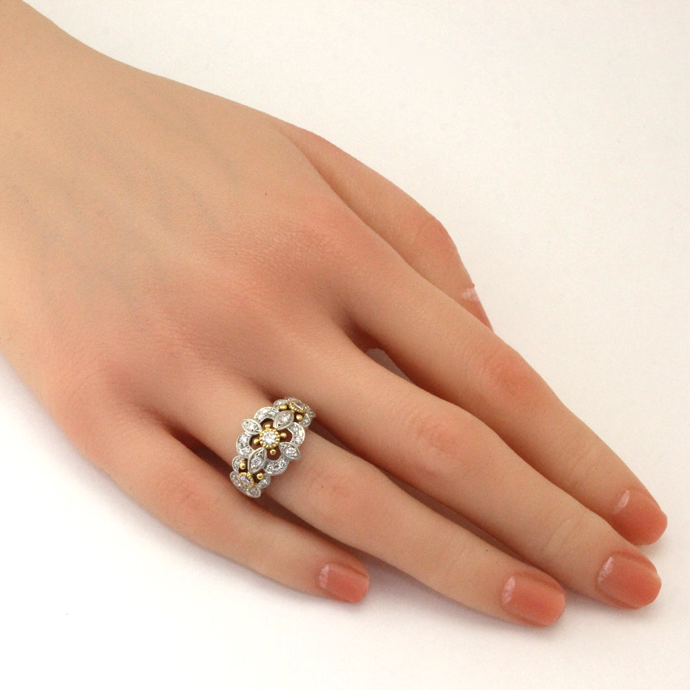 This ring has a delicate, elegant and sophisticated design with milgrain finish.