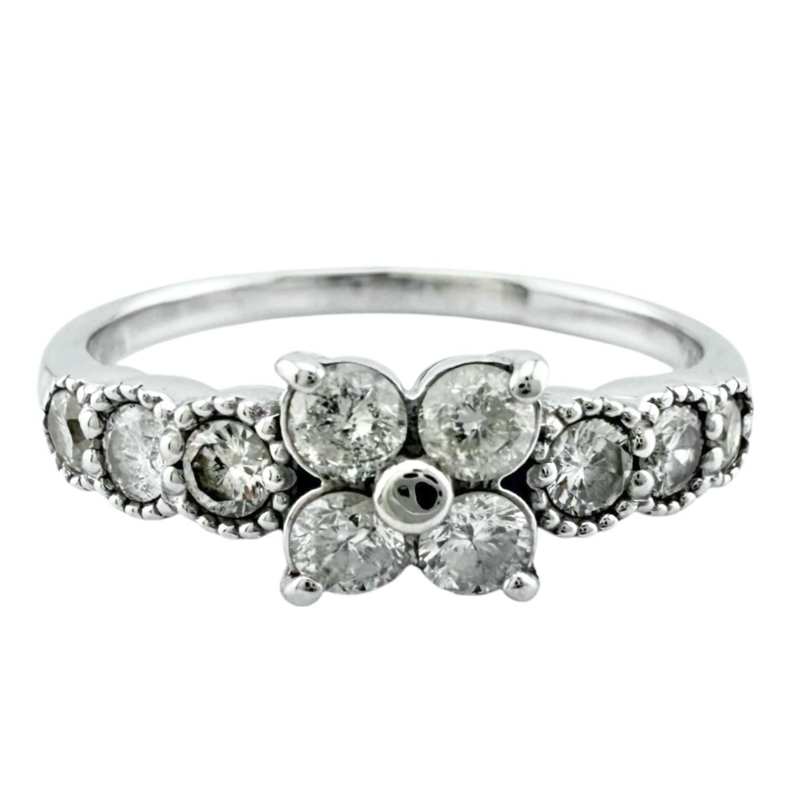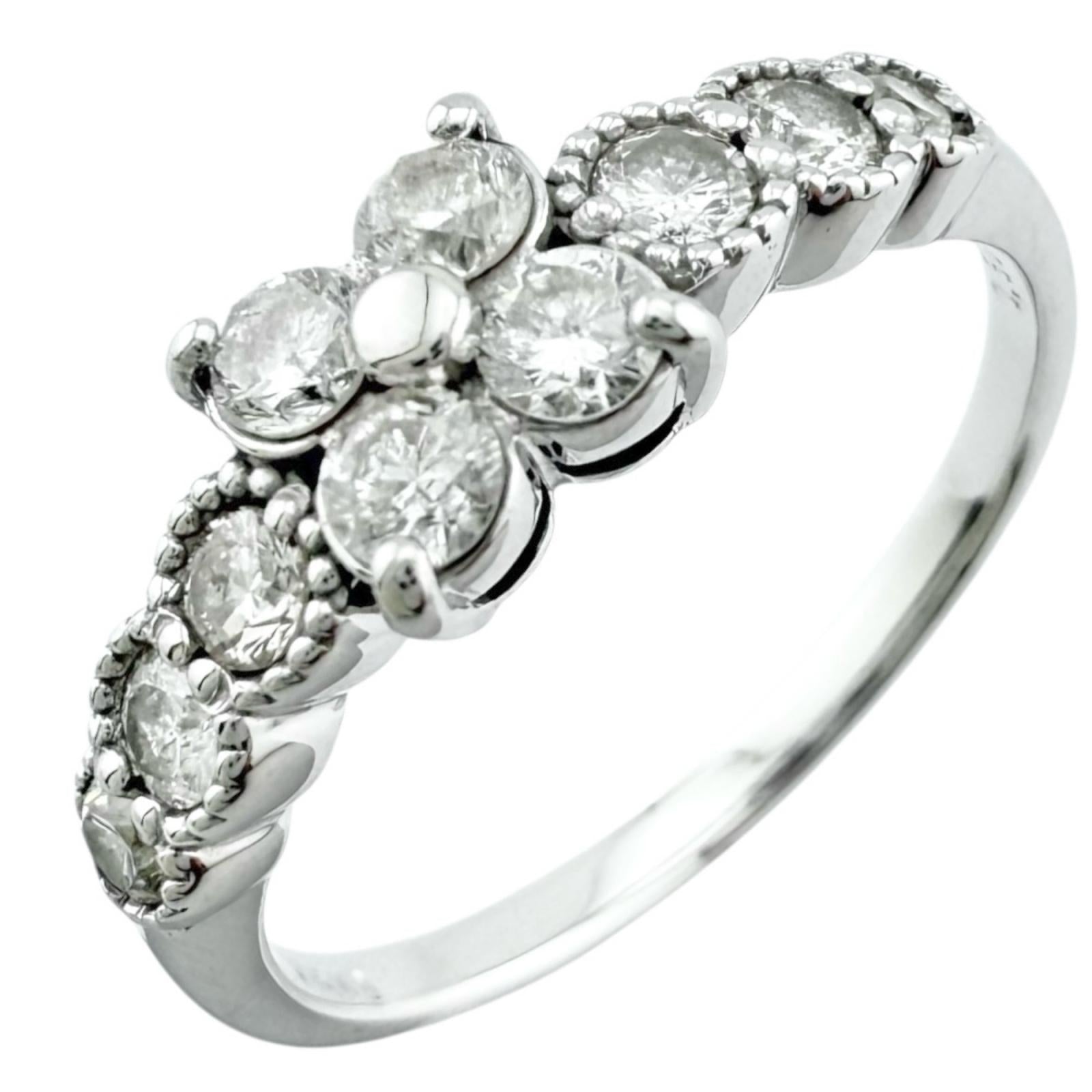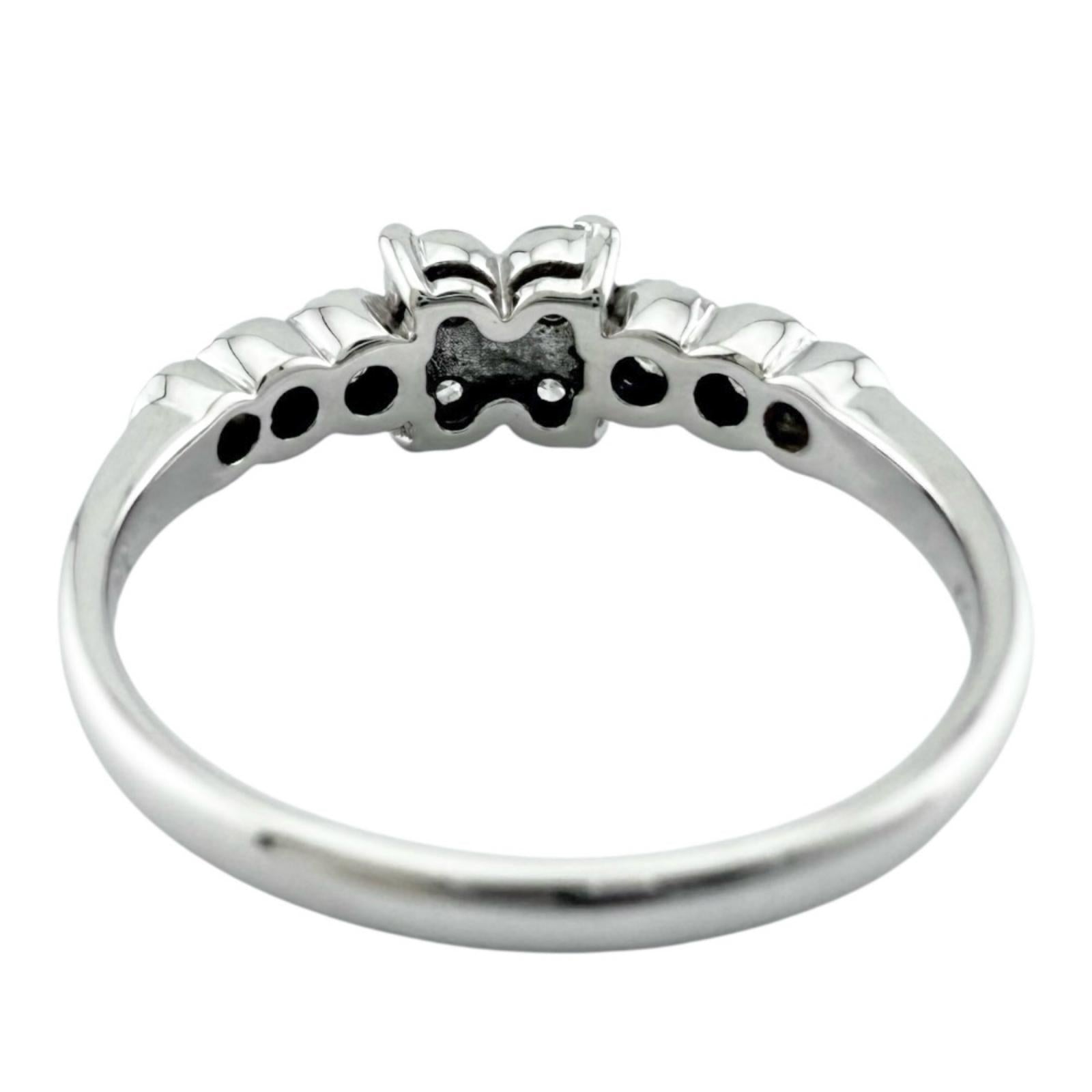 This is a 18 K white gold ring with a lovely floral motif and a diamond shine.