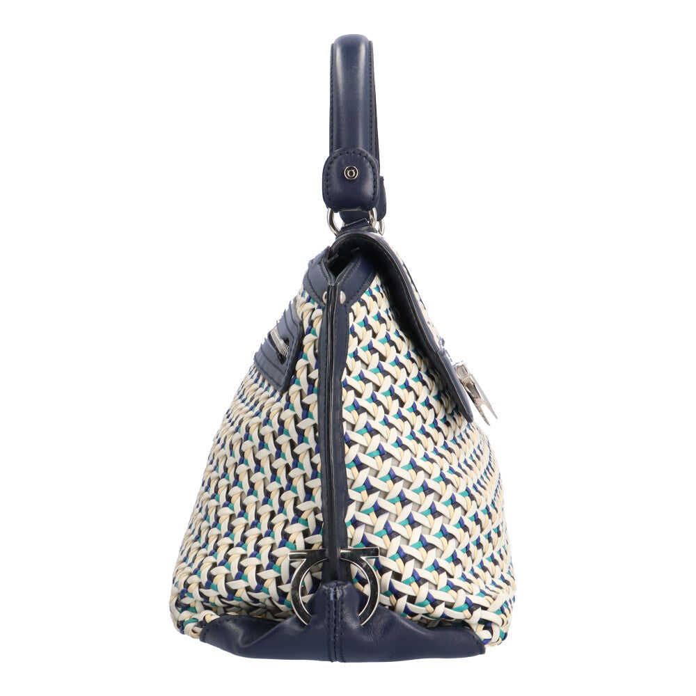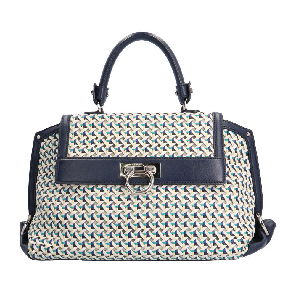 Salvatore Ferragamo handbag leather navy women's used
