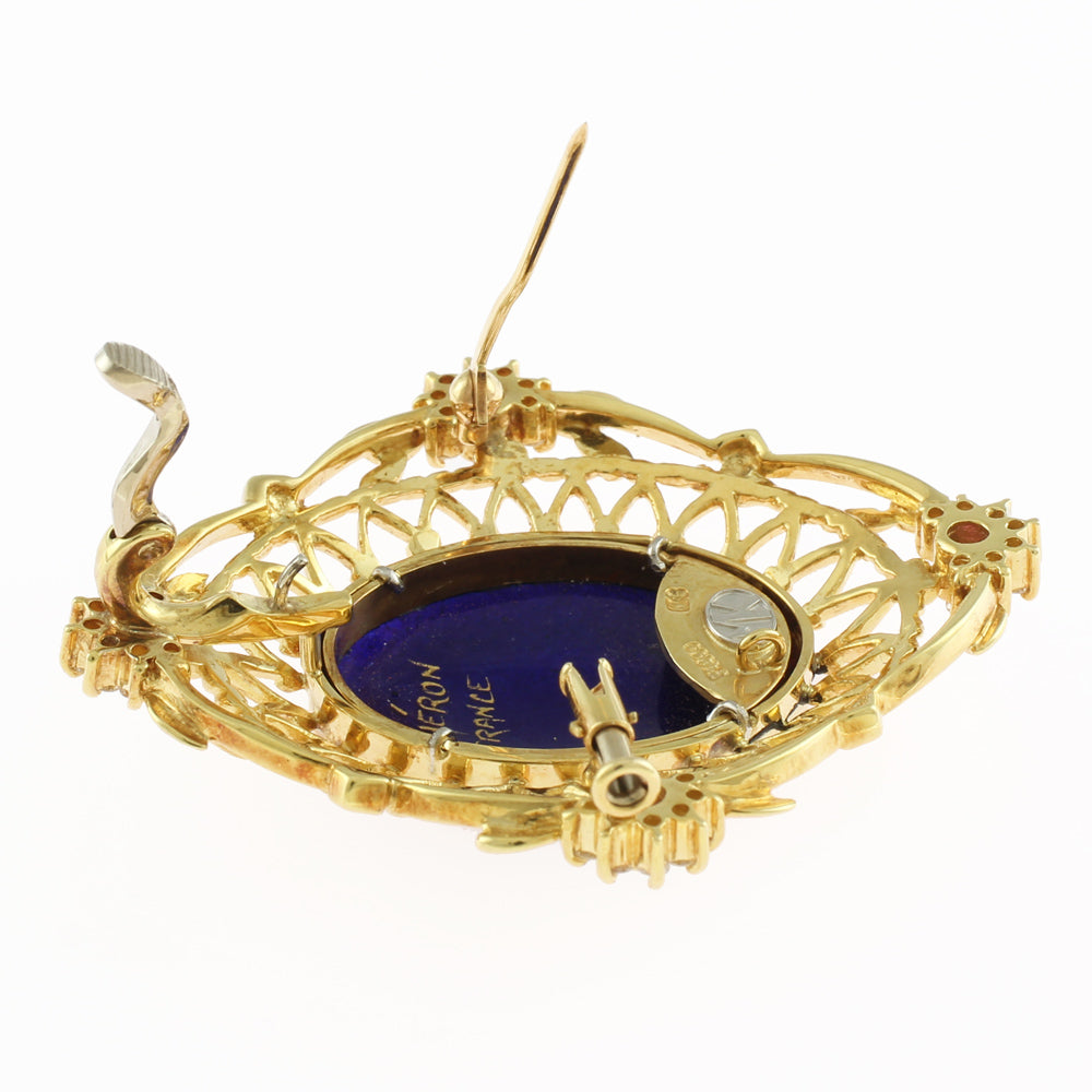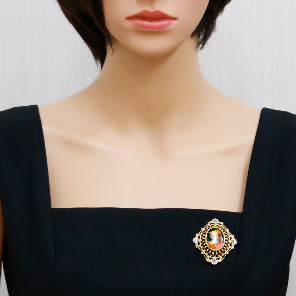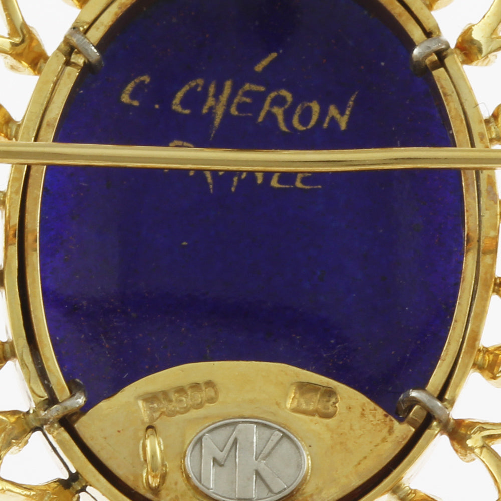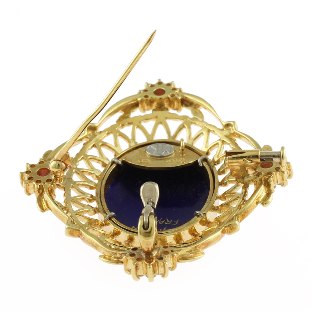 [Artist] Mitsuo Kaji Enamel Pendant Brooch 18K Yellow Gold Pink Sapphire Diamond Women's Used
