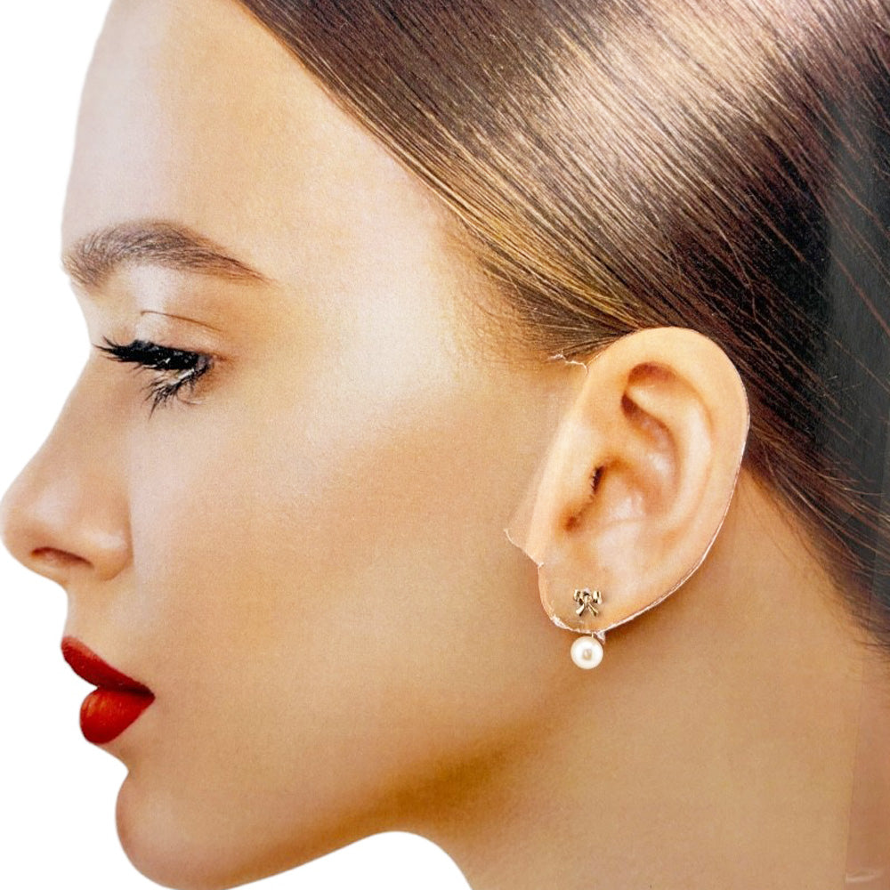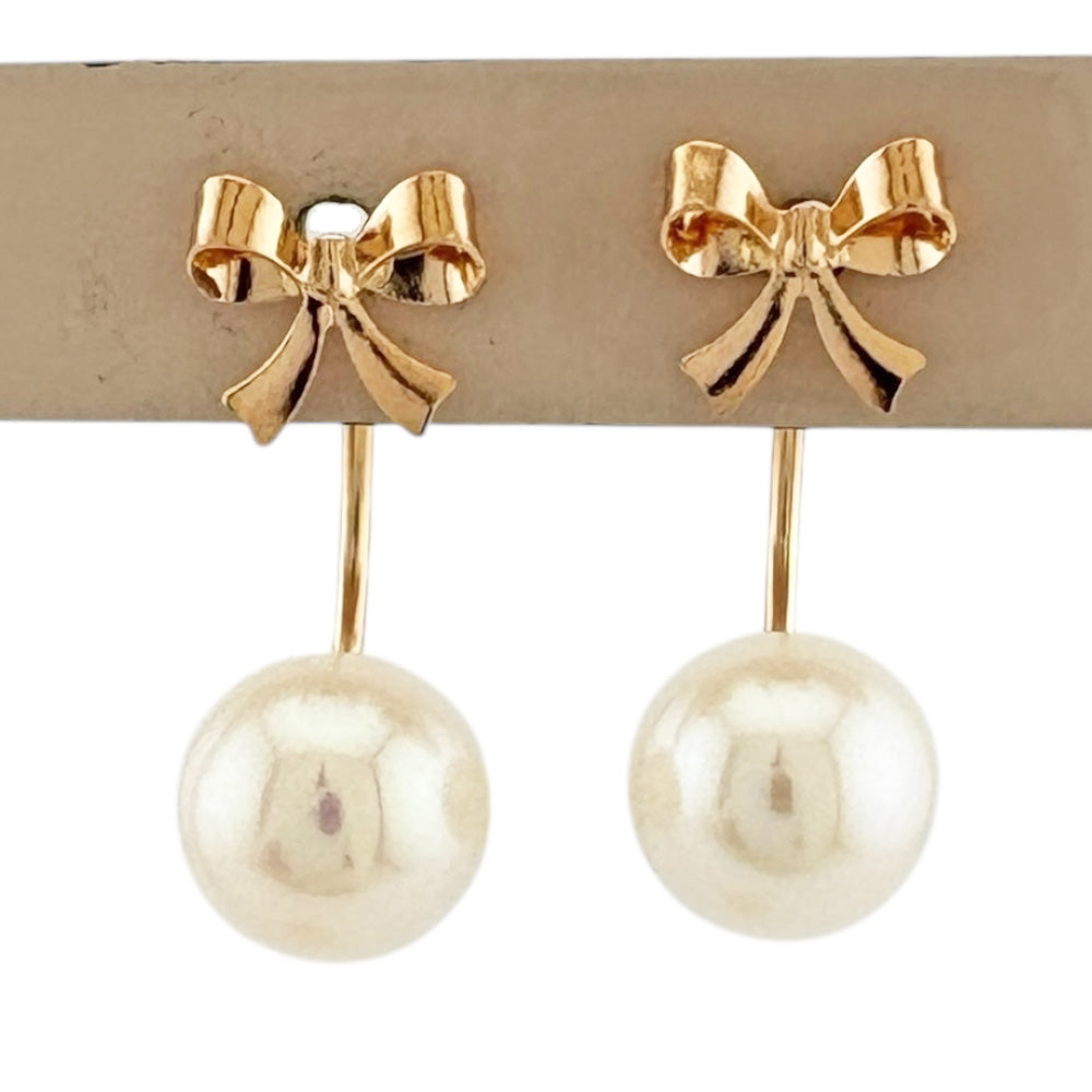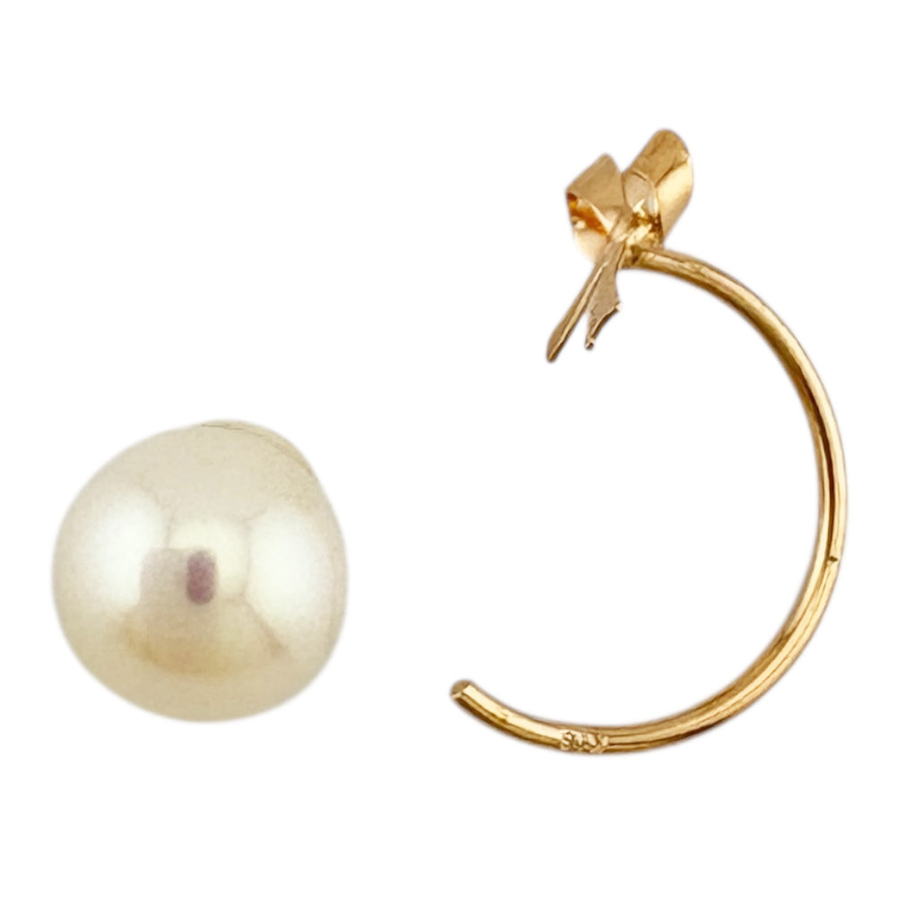 K18ピンクゴールドの愛らしいリボンと艶やかな淡水パールが、耳元に可憐な輝きを添えるバックキャッチピアスです。 前後で異なるデザインを楽しめ、女性らしい上品さと遊び心を両立させます。