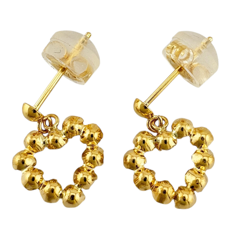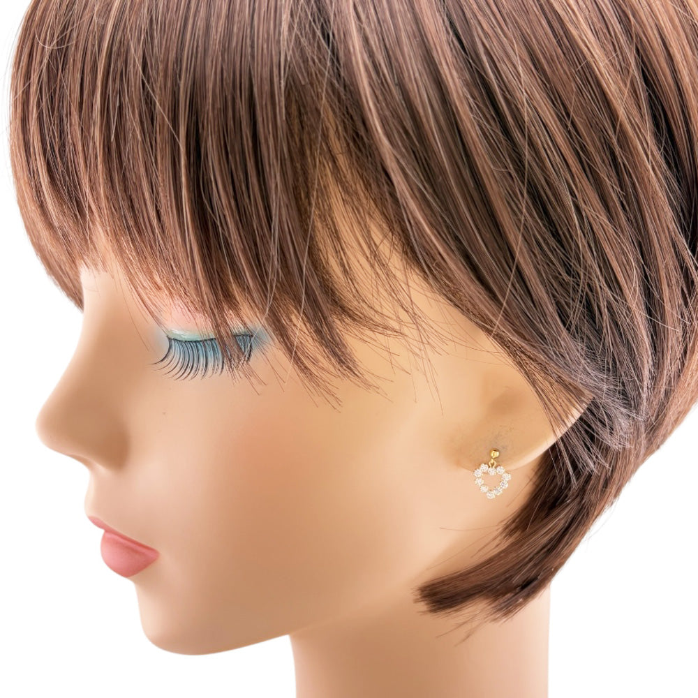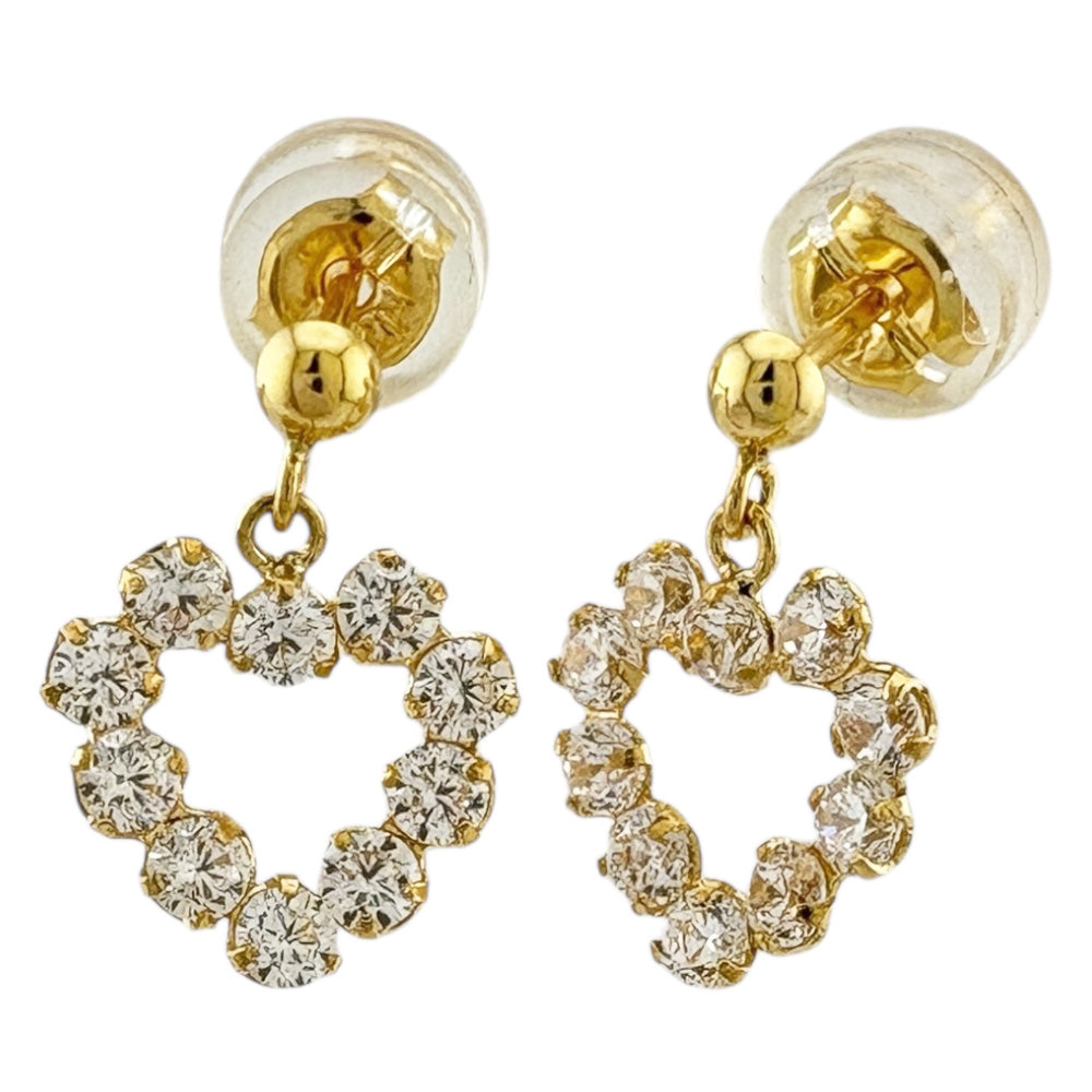 K18イエローゴールドのキュートなオープンハートに、キュービックジルコニアが眩い輝きを添えるドロップピアスです。 耳元で軽やかに揺れるたびに、華やかさと愛らしさを演出します。