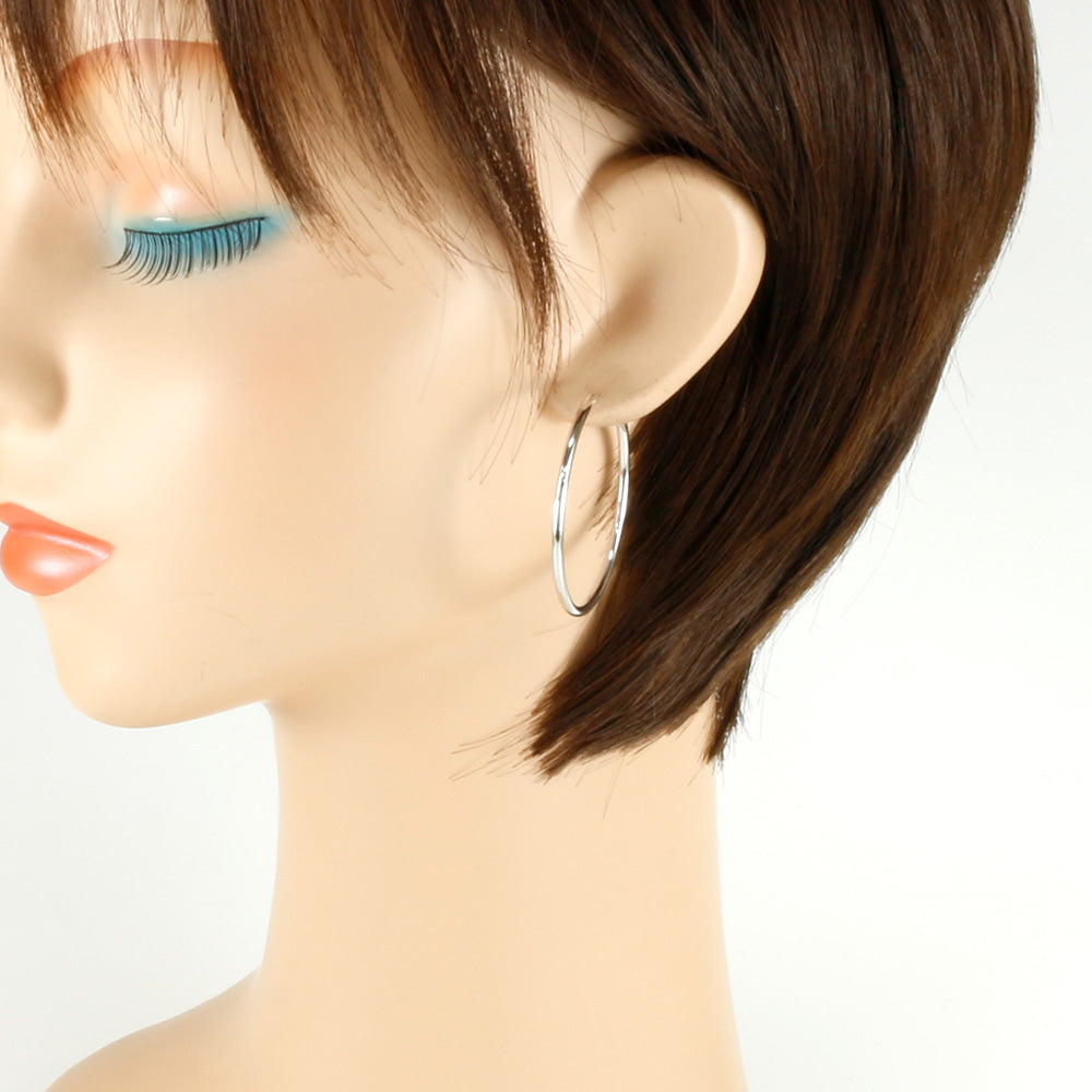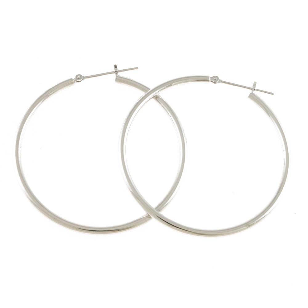 【新品】 K14WG ピアス フープ パイプ 2×40 14金 K14ホワイトゴールド シルバー レディース