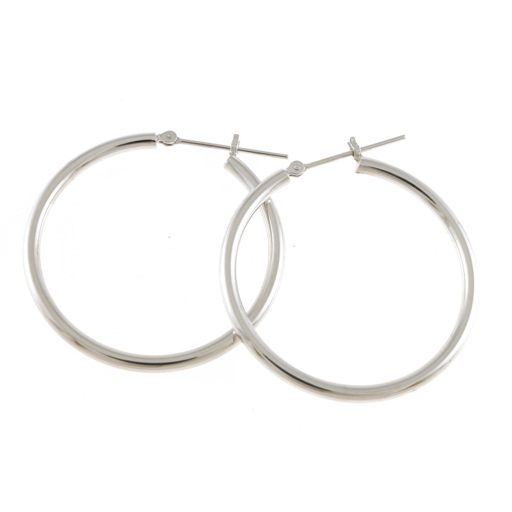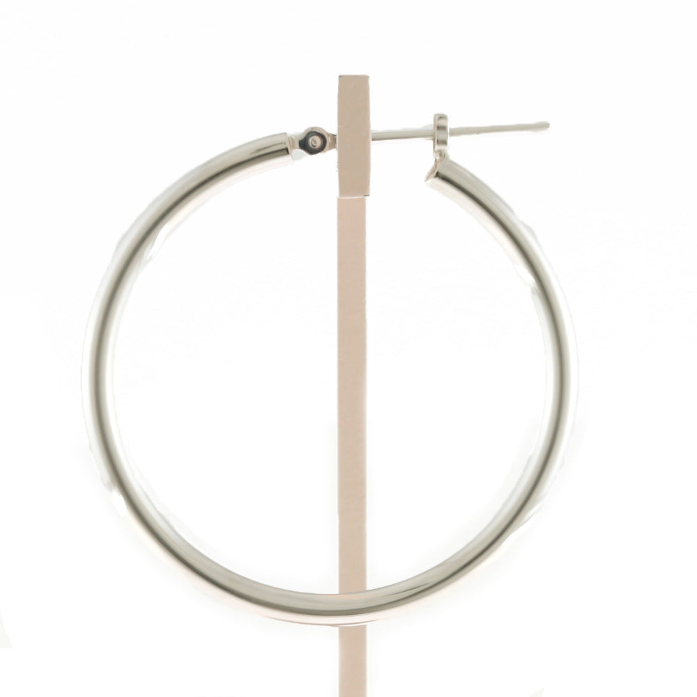 【新品】 K14WG ピアス フープ パイプ 2×30 14金 K14ホワイトゴールド シルバー レディース
