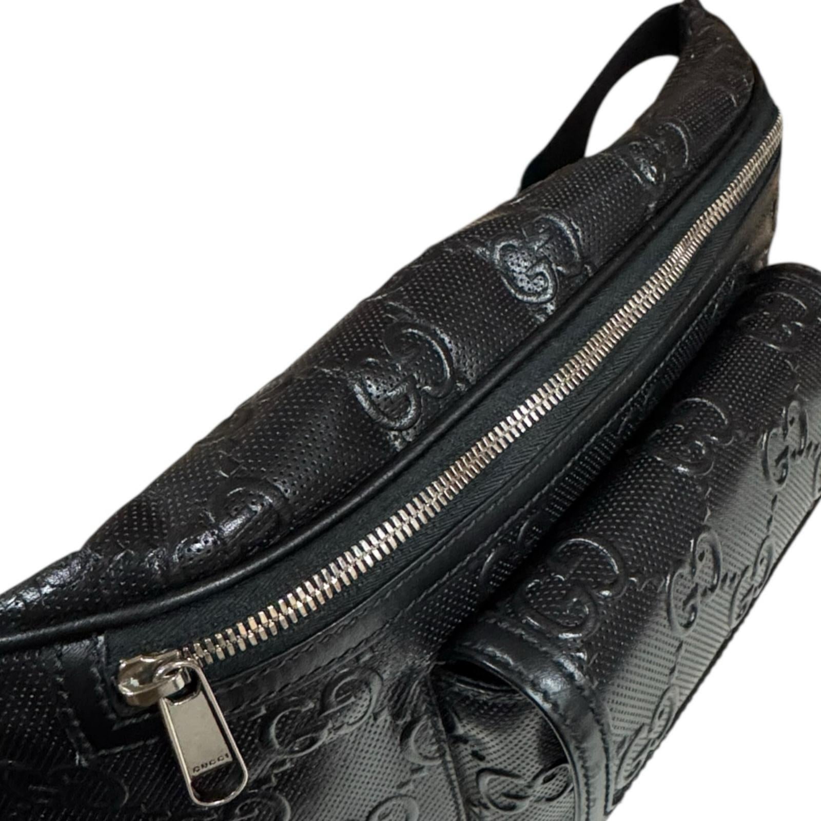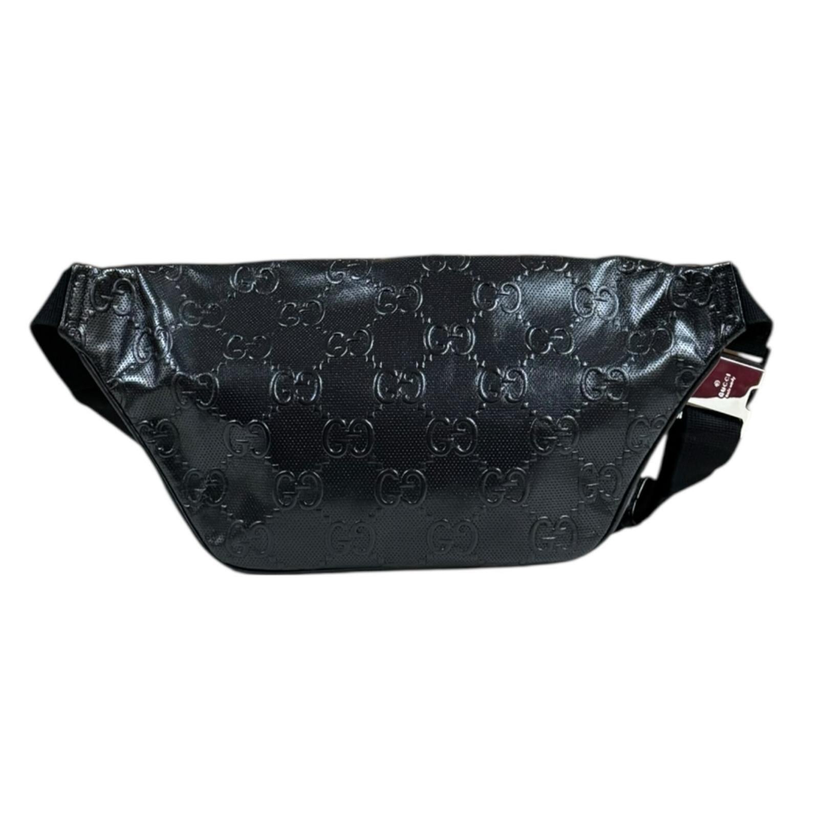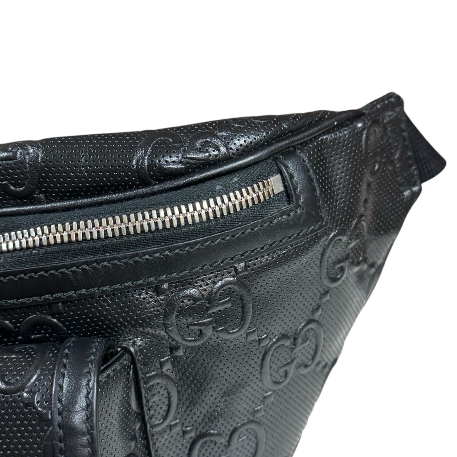 GUCCI グッチ GGエンボス ウエストバッグ レザー ブラック メンズ 中古