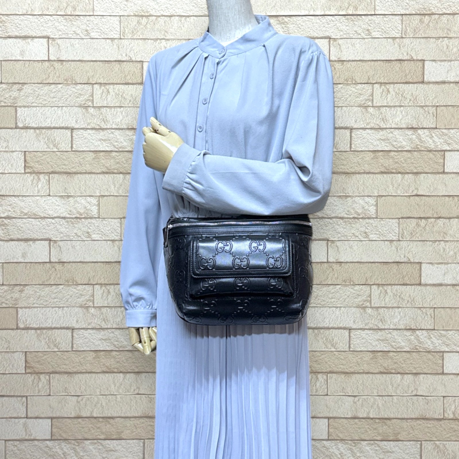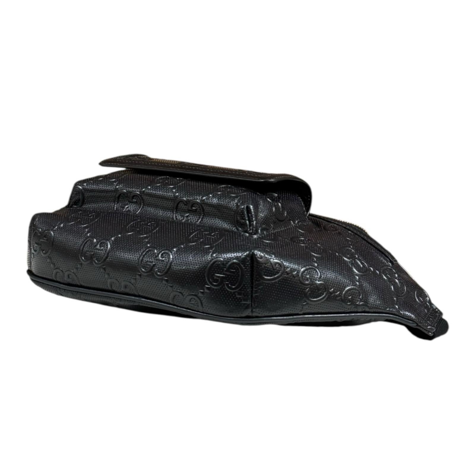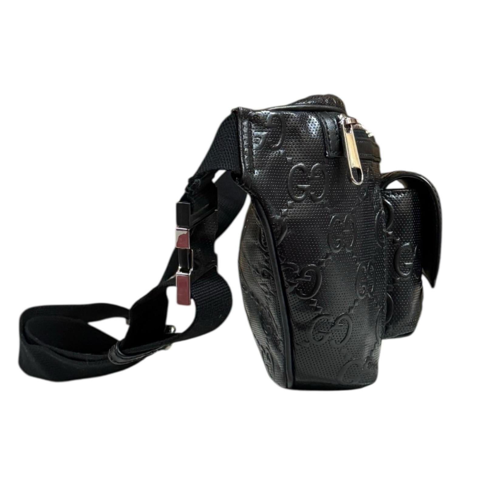GUCCI グッチ GGエンボス ウエストバッグ レザー ブラック メンズ 中古