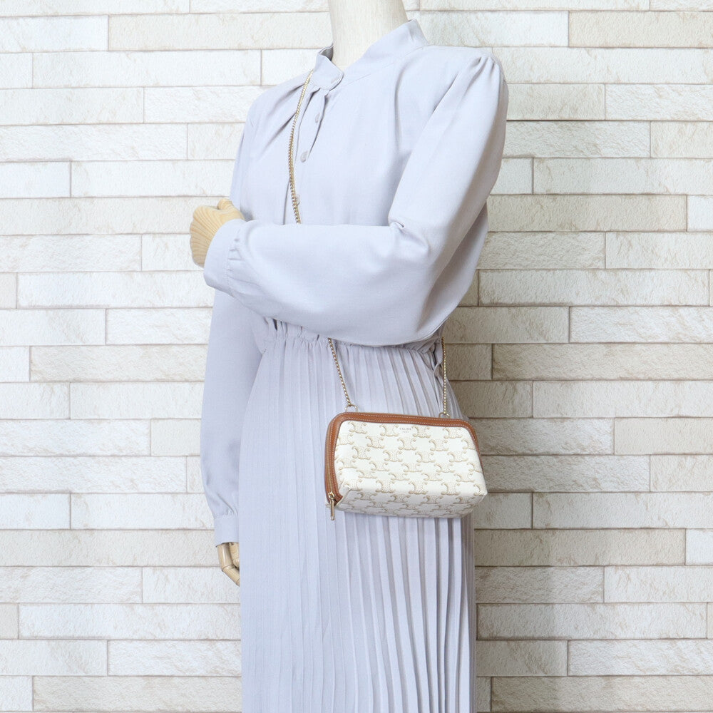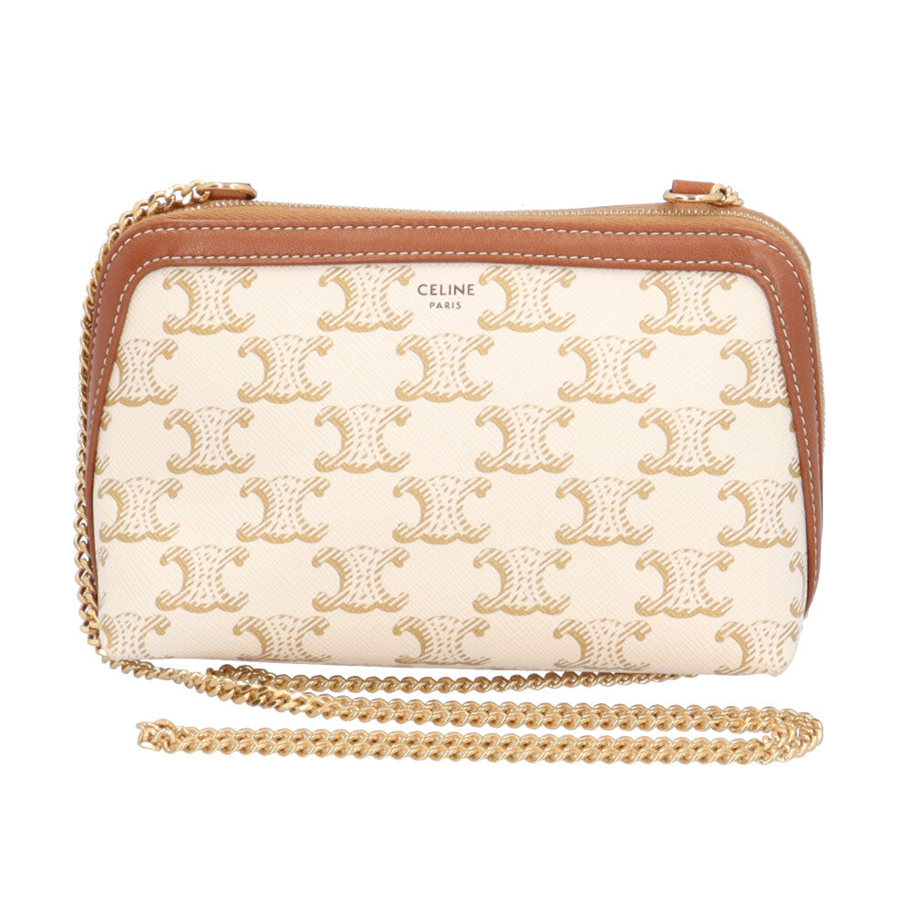 セリーヌ トリオンフ ショルダーバッグ コーティングキャンバス ホワイト レディース CELINE 【中古】