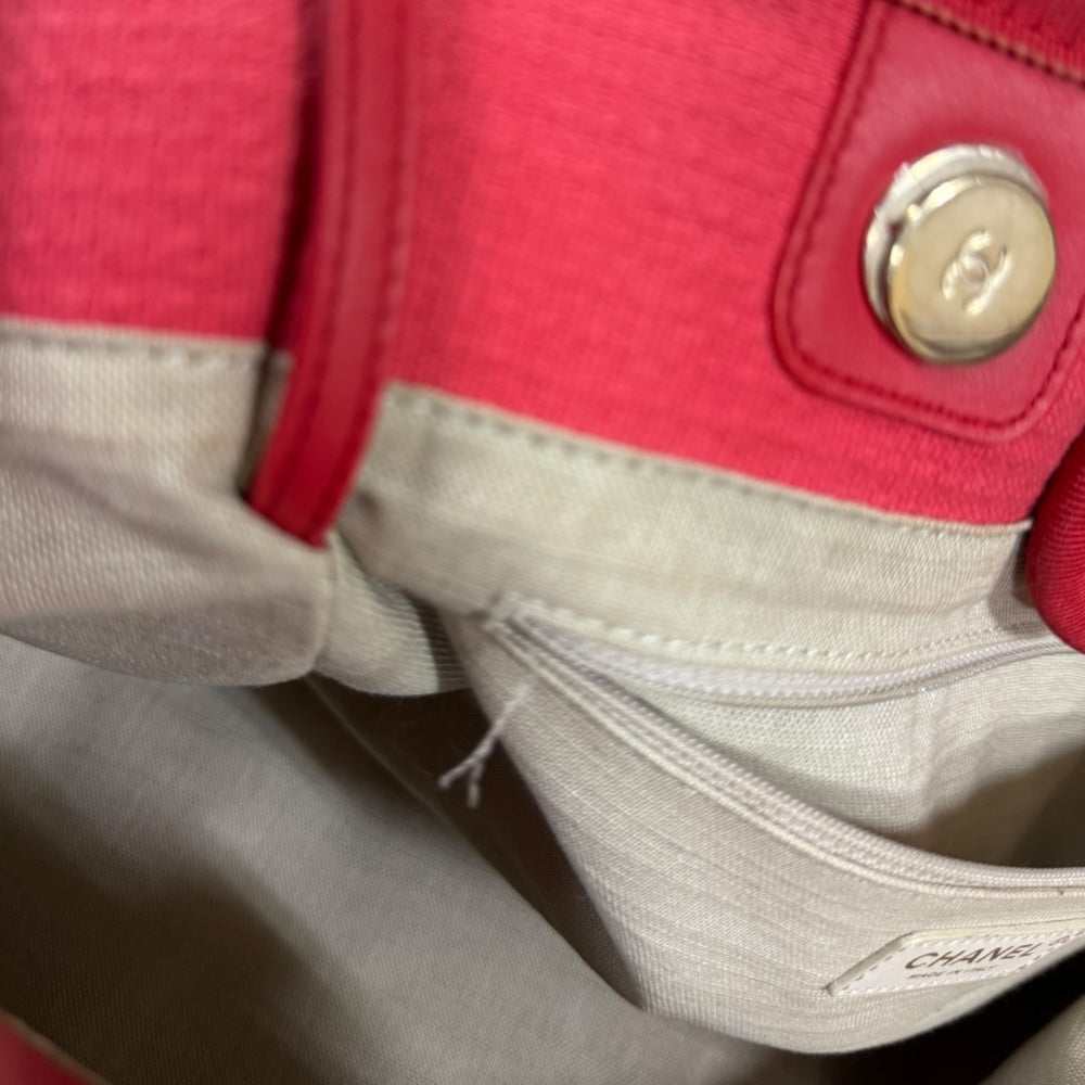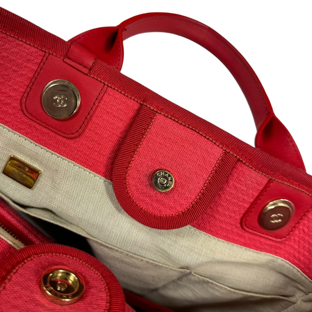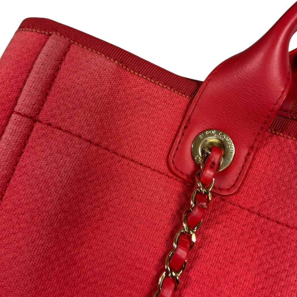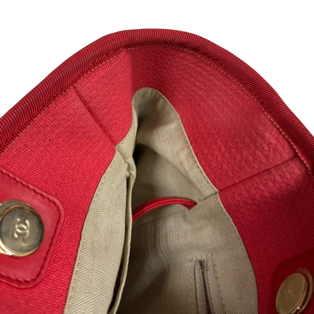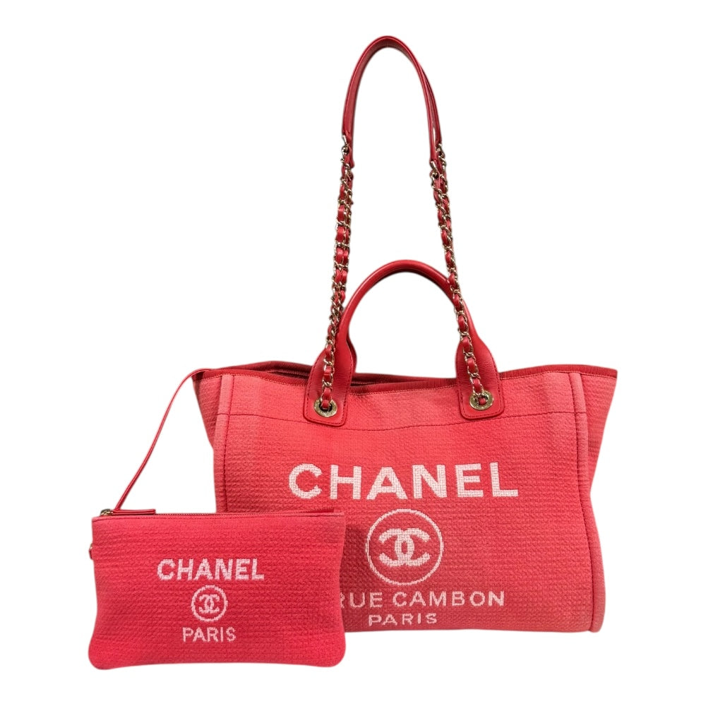 CHANEL シャネル MM ドーヴィル ショルダーバッグ キャンバス レッド レディース 中古