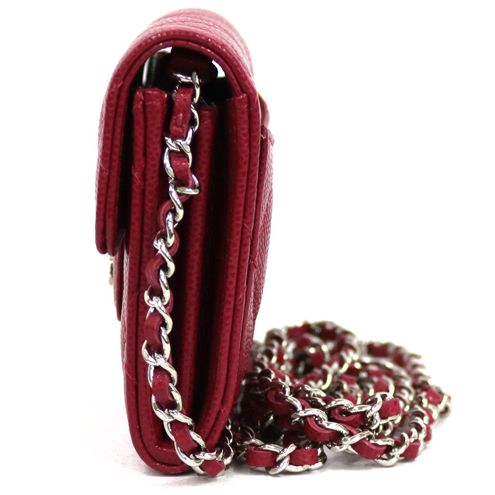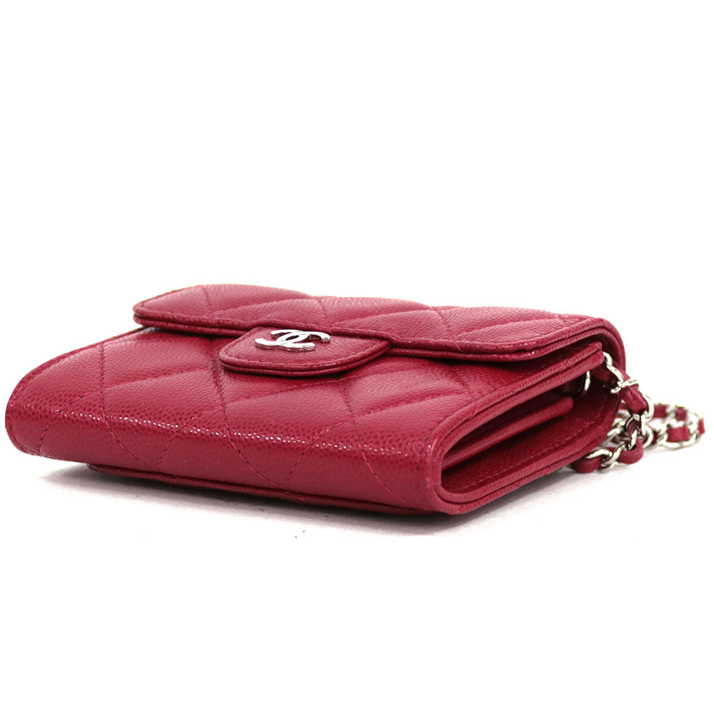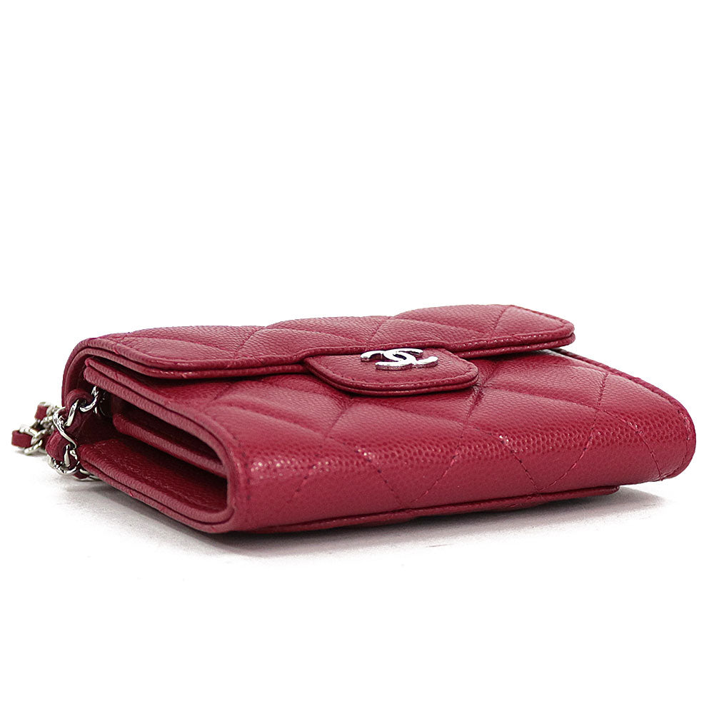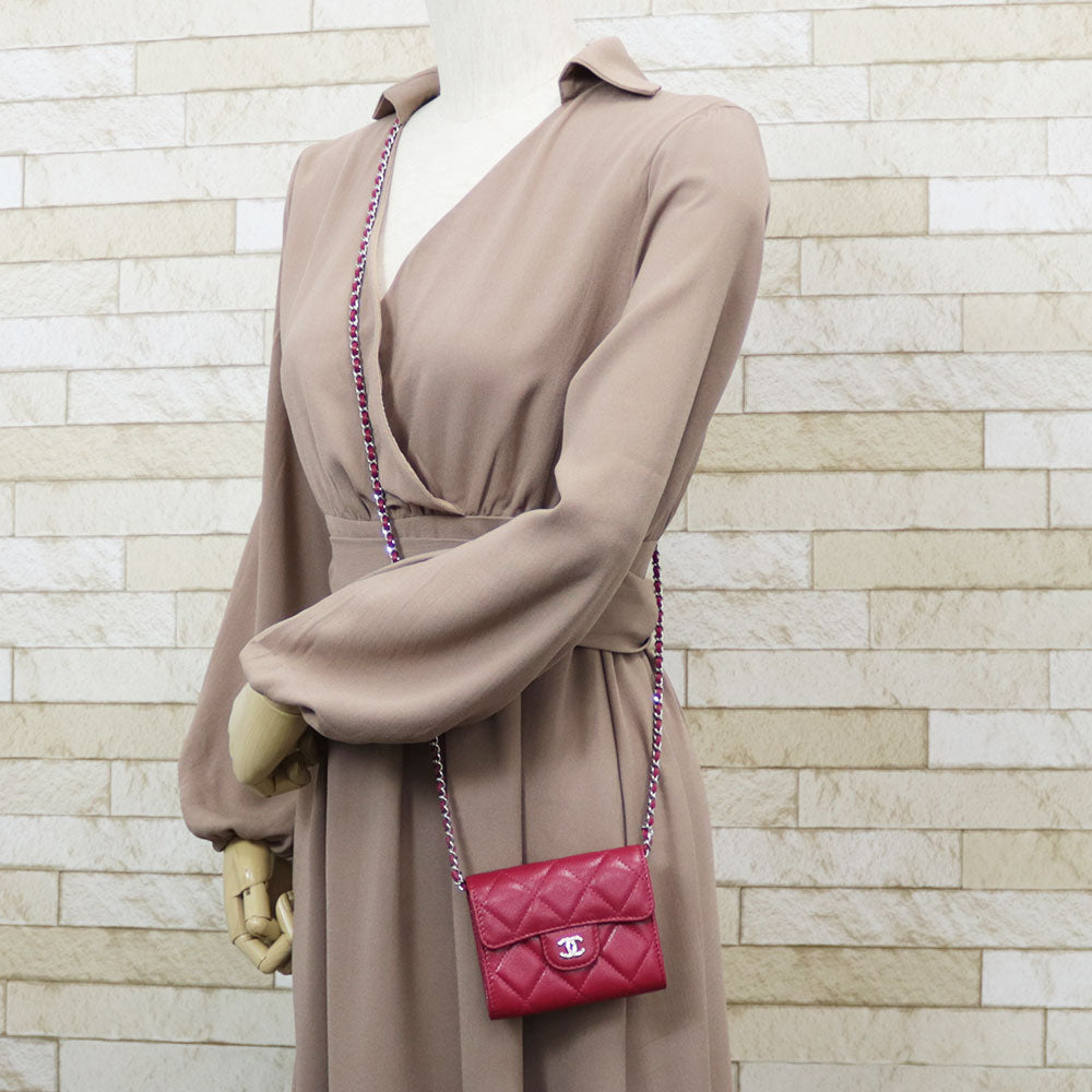 とっても小さなチェーンショルダーでかわいらしいです。女性らしいレッドカラーが印象的。