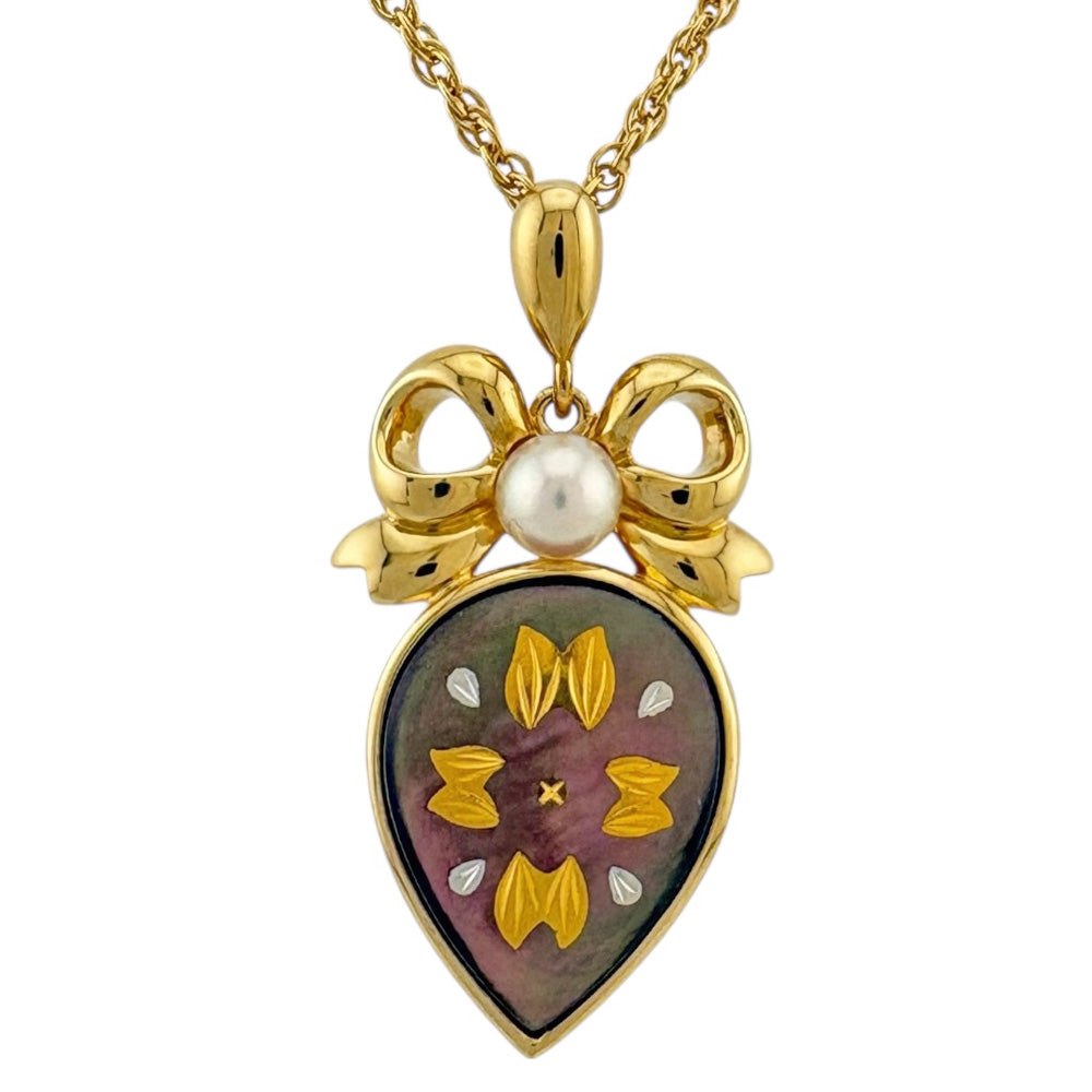 MIKIMOTO ミキモト ピクウェ ネックレス 18金 K18イエローゴールド シェル レディース 中古