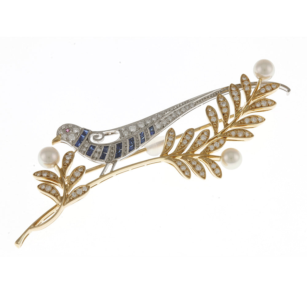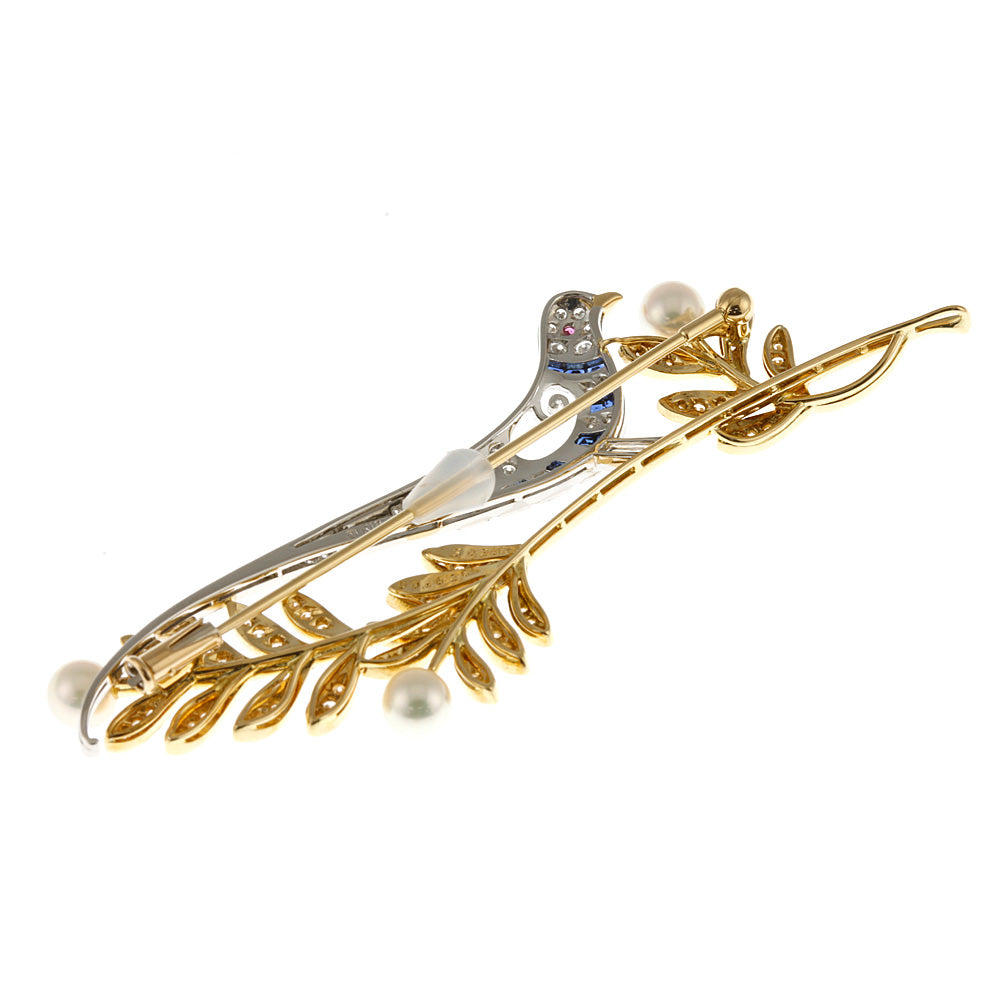 枝にとまる鳥をモチーフに美しいシルエットで作られたブローチです。