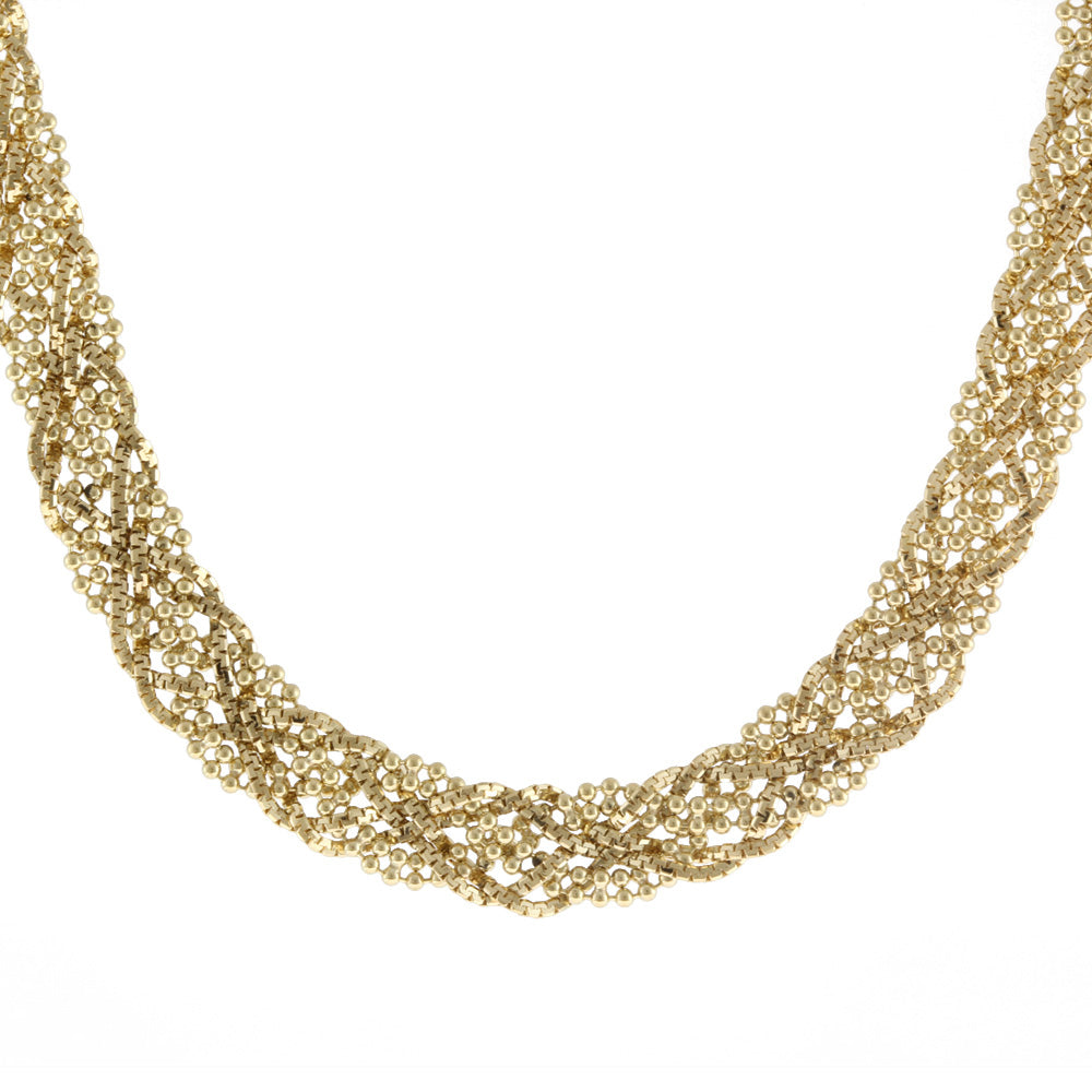 編み込みのデザインがしなやかな着け心地にしてくれるネックレスです。