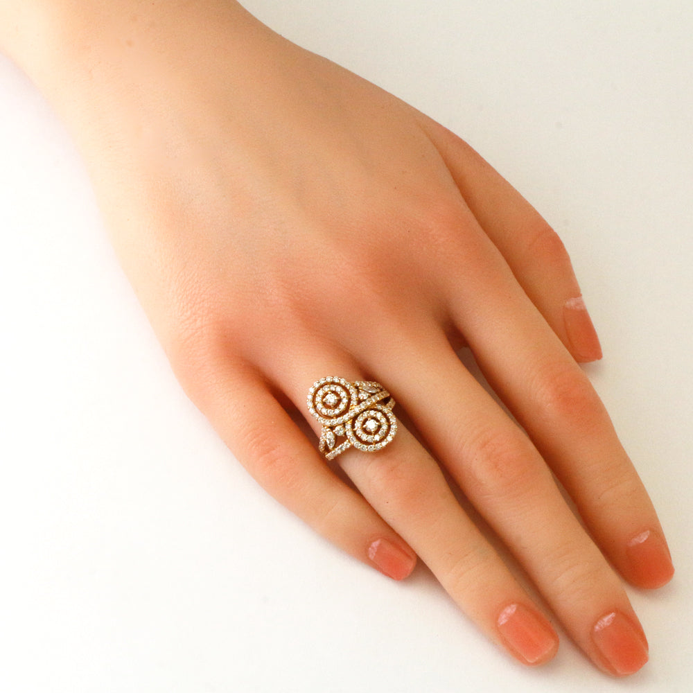 くるくると渦巻き状モチーフがユニークでエレガントなリングです。