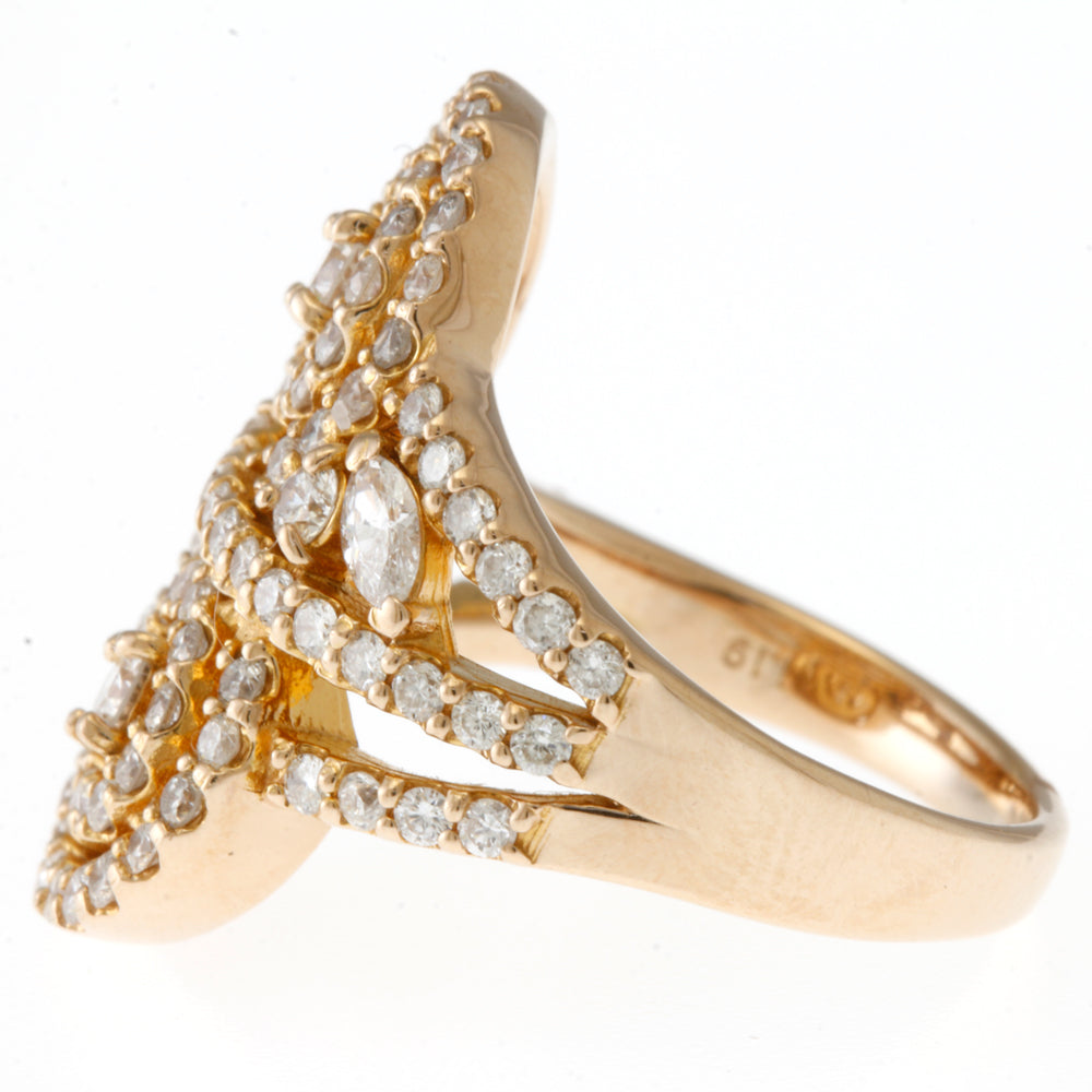 リング 指輪 9号 渦巻き 18金 K18ピンクゴールド ダイヤモンド 1.19ct レディース 中古